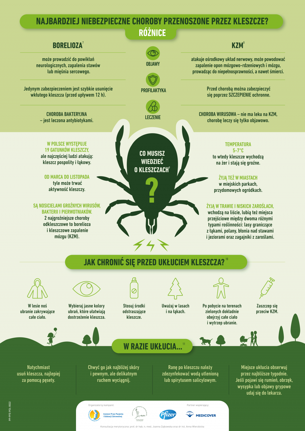 Dostępna jest także edukacyjna strona www.kleszczeinfo.pl, na której dostępne jest kompendium wiedzy na temat kleszczy i zagrożeń jakie są z nimi związane, porady dotyczące postępowania z pajęczakami i przydatne informacje dla osób prowadzących aktywny tryb życia wśród zieleni lub wybierających się w tereny zagrożone kontaktem z kleszczem. Organizatorami kampanii jest Instytut Praw Pacjenta i Edukacji Zdrowotnej, Fundacja Aby Żyć i Pfizer. Partnerem wspierającym jest Medicover. Patronem honorowym kampanii jest Główny Inspektorat Sanitarny.