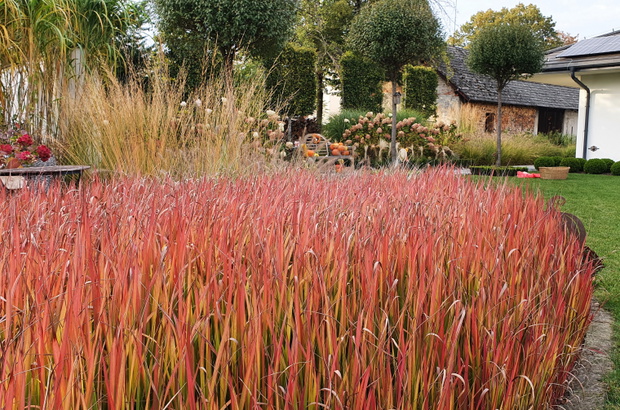 Imperata 'Red Baron' - niezwykle efektowna i ciekawa odmiana trawy ozdobnej, wolno rozrastającej się i nieekspansywnej. Tworzy kępy o liściach zielonych na początku wegetacji czyli wiosną, a później, aż do jesieni czerwonych, przebarwiających się od wierzchołka ku dołowi. Jest to trawa rozłogowa o średniej wielkości, dorastająca do około 40 – 60 centymetrów wysokości. 'Red Baron' to trawa wymagająca gleby żyznej, wilgotnej, ale przepuszczalnej, bogatej w potas oraz stanowiska słonecznego, ewentualnie tylko lekko zacienionego.