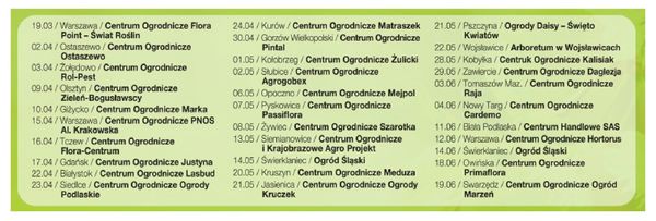 Odpowiedzi na te oraz inne pytania otrzymają Państwo na spotkaniach z specjalistami branży ogrodniczej, które na przestrzeni najbliższych trzech miesięcy odbędą się w 30 polskich miastach! Najbliższe już 19 marca w Warszawie!