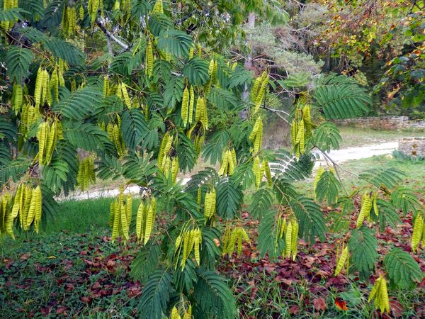 Albizia julibrissin ma delikatne, podwójnie pierzaste liście, które zrzuca jesienią. Rozłożyste drzewo wyróżnia się malowniczą, parasolowatą koroną. Pod koniec lata lub jesienią na pędach albizji rozwijają się grona miotełkowatych, złożonych z dziesiątków pręcików kwiatów w kolorze różowym. Starsze okazy tego małego drzewka bez problemu znoszą temperaturę do -10°C. Odporniejsza na zimno jest niższa odmiana ‘Rosea’. Zimą wystarczy owinąć pień matą trzcinową, aby uchronić drzewo przed przemarznięciem.