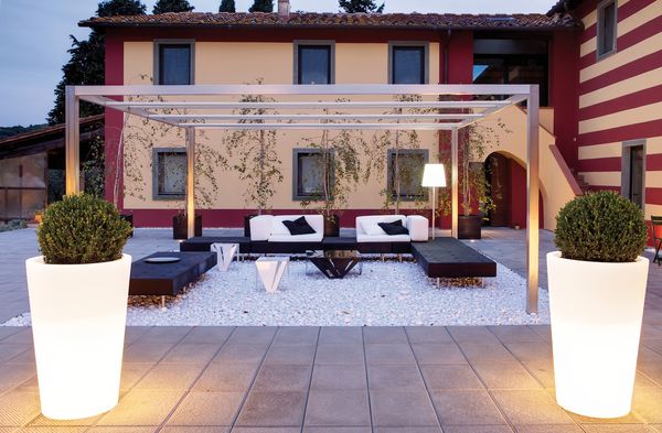 W towarzystwie mebli z europalet doskonale sprawdzają się rozwiązania z nowoczesną nutą – świecące donice są jednym z nich. Możesz umieścić w nich kwiaty, a jednocześnie cieszyć się ciepłym światłem w letnie wieczory. Jeśli szukasz niebanalnego pojemnika na drobiazgi, napoje lub przekąski, również wykorzystaj podświetlane donice. To także ciekawa alternatywa biurka lub stołu z wbudowanym oświetleniem: wystarczy, że na pojemniku położysz płytę z plexi. Kontrast, jaki tworzą modernistyczne świecące pojemniki i rustykalne meble z drewna to hit sezonu!