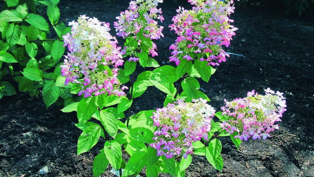 Hortensja bukietowa Hydrangea paniculata odmiany to cenny krzew o przepięknych zaokrąglonych kwiatostanach wypełnionych ozdobnymi płonnymi kwiatami. Początkowo są białe, ale z czasem stają się delikatnie zaróżowione. Krzewy są dość niskie, dorastają do metra, ale mogą być wyższe. Krzewy mają wyprostowane pędy, osiągają 50 cm wysokości oraz średnicę około 70 cm. Krzewy tej odmiany mogą mieć również zastosowanie jako rośliny okrywowe posadzone po jednej na jednym m². Nieraz kwiatostany pod ciężarem kwiatów opadają, dlatego trzeba zapewnić krzewom podpory.