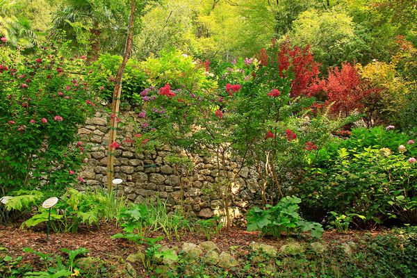 Jeżeli w ogrodzie rośnie wiekowe drzewo owocowe, które już nie owocuje, nie trzeba go wycinać. Możemy przy nim posadzić biało kwitnącą pnącą różę z grupy ramblerów, np. ‘Bobby James’ lub ‘Felicite Et Perpetue’, której pędy wplotą się i rozprzestrzenią w koronie drzewa, tworząc w okresie kwitnienia niezwykły bukiet. Nastrój panujący w ogrodzie zależy także od materiałów użytych do budowy posadzki tarasu, nawierzchni ścieżek, jak również obrzeży wydzielonych fragmentów działki i pojedynczych grządek. Styl ogrodu wiejskiego opiera się na haśle: natura triumfuje. Z tego względu nawet ogrodowe ścieżki usłane są przez żwir i ściółka z kory.