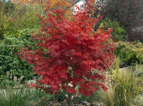 W złoty październikowy dzień wydaje się, że liście klonu japońskiego zgromadziły ogromne ilości promieni słonecznych i teraz mogą lśnić własnym blaskiem. Intensywność, z jaką się przebarwiają, jest rzeczywiście niezwykła. Listowie jest widoczne z daleka i dzięki niemu ogród wypełnia najwspanialsza jesienna aura.