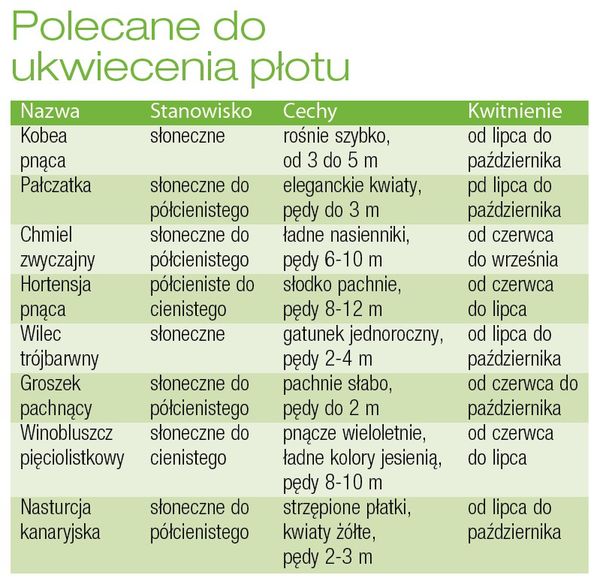 Te rośliny najbardziej nadają się do ukwiecenia płotu lub murku |