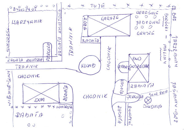 Plan działki narysowała Krystyna Ciołek z Sieradza