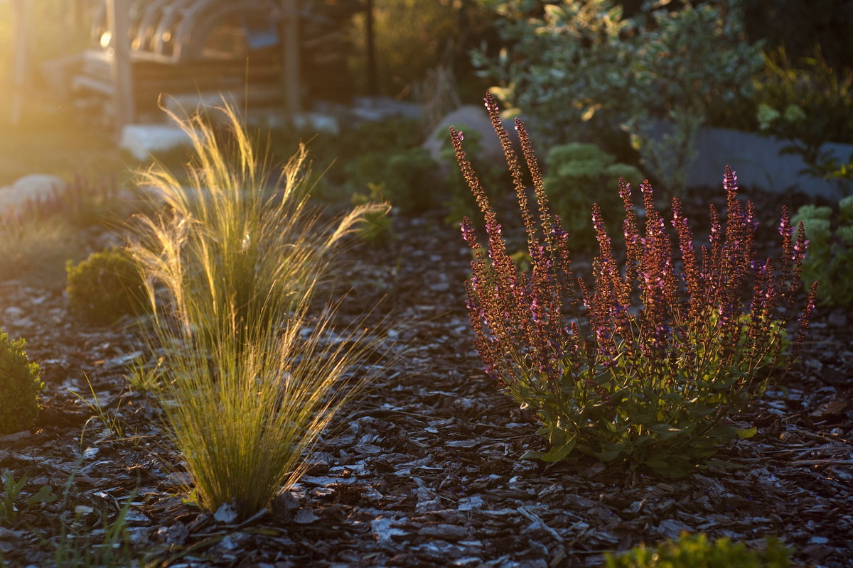 Tajemnicze zakątki mogą także ukrywać bujnie kwitnące byliny i krzewy. Należy jednak pamiętać, że wysokie elementy rozgraniczające tworzą większe strefy cienia. I właśnie te specyficzne warunki trzeba brać pod uwagę, wybierając rośliny na znajdujące się tam rabaty.