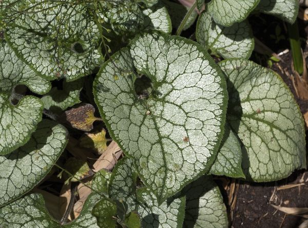 Nowa odmiana Brunnera wielkolistna Brunnera macrophylla ‘Looking Glass’ wyróżnia się srebrzysto zielonymi liśćmi i podobnie jak spokrewniona z nią odmiana ‘Jack Frost’ ma wszelkie zadatki na to, aby zdobyć uznanie hodowców. Świetnie wygląda na tle ciemnozielonych liści