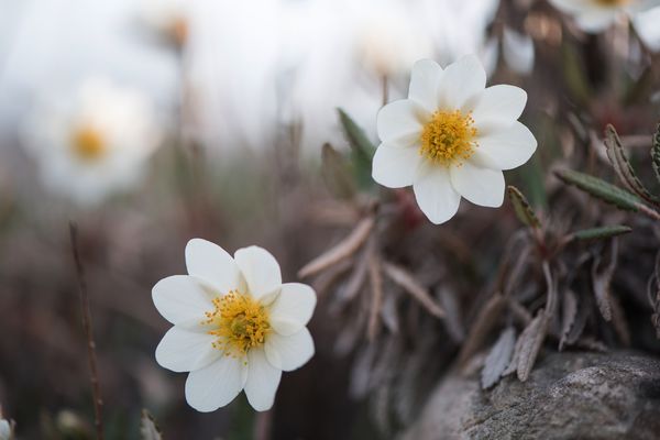Dębik Sündermanna Dryas x suendermanii z rodziny różowatych jest krzewinką, która tworzy gęste zbite kobierce wys. 5 cm. Liście, w większości zimozielone, są eliptyczne, do 4 cm długości, grubo karbowane, skórzaste, z wierzchu ciemnozielone i błyszczące, a od spodu gęsto srebrzyście omszone. W maju, czerwcu na pojedynczych krótkich (10 cm), pokrytych brunatnymi włoskami szypułkach tworzą się kremowobiałe kwiaty średnicy 3 cm. Po ich przekwitnięciu pojawiają się dekoracyjne puszyste owocostany.