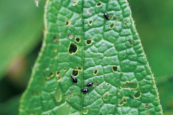 W tym roku dość duże szkody wyrządziły mi w ogródku małe czarne, skaczące chrząszcze. Wygryzły dziury w liściach m.in. żywokostu i malw. Miodunkę zjadły prawie doszczętnie. Jak się ich pozbyć i co to za robaki?