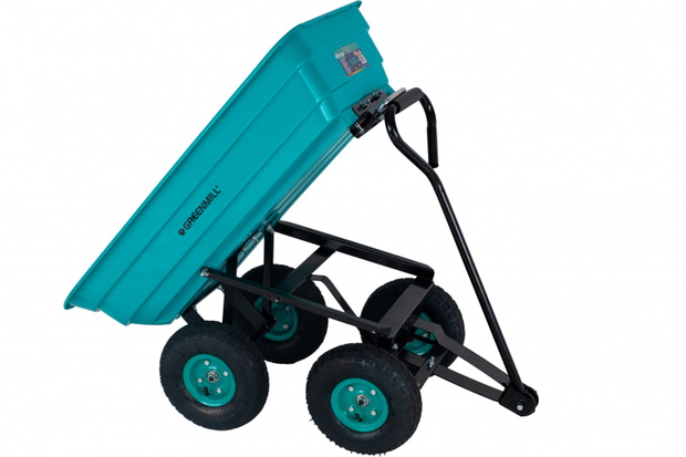 Do przenoszenia materiału kompostowanego oraz liści doskonale nada się ten wózek z uchylną misą marki Greenmill: