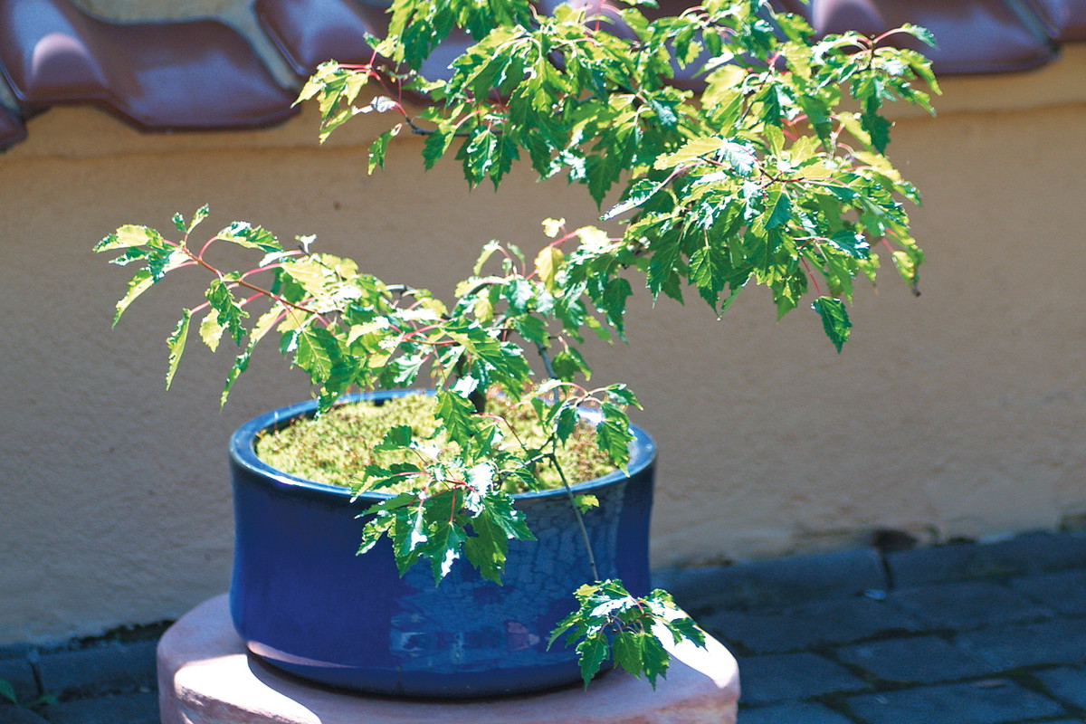 Na początek udałem się po sadzonki do szkółki leśnej. Jedną roślinę upatrzyłem sobie od razu. Był to klon tatarski o pięknie wygiętym pniu. Posadziłem go w płaskiej doniczce, podkreślającej jego orientalny charakter.