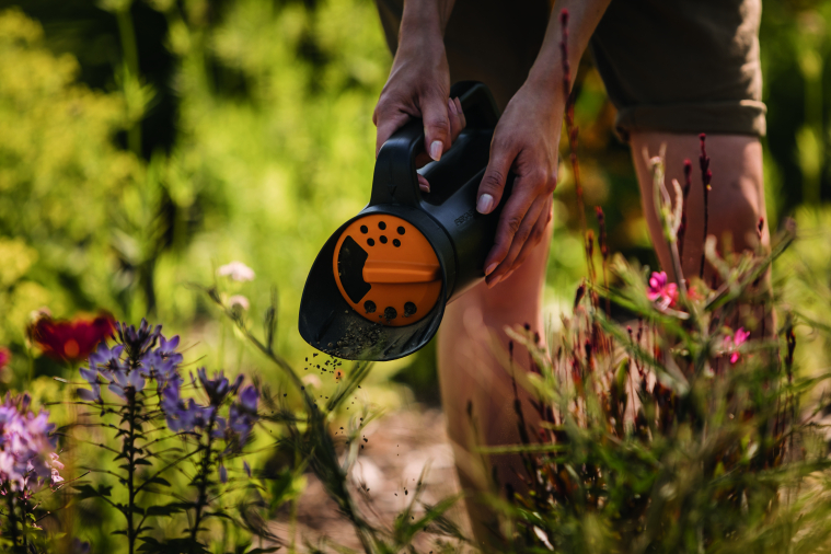 Przy rozsiewaniu nasion doskonałym pomocnikiem będzie siewnik Solid™. To wszechstronne narzędzie może być używane przez cały rok. Latem można nim rozsiewać nasiona oraz rozrzucać nawóz, a zimą rozsypywać sól. Obracane pokrętło pozwala na łatwą regulację dozowania w zależności od zastosowania granulatu. Istnieje możliwość wyboru jednego z trzech różnych ustawień średnicy otworu do wysiewania środków sypkich, grubo i drobnoziarnistych. Zbiornik ma podziałkę wskazującą pojemność w litrach. Co więcej pokrywkę można zamknąć, co będzie wyjątkowo przydatne podczas przechowywania i transportu.