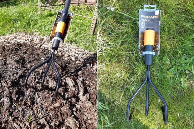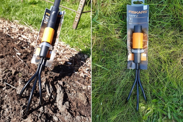 Kultywator QuikFit w mniejszej wersji to poręczny przyjaciel każdego ogrodnika! Świetnie sprawdzi się przy spulchnianiu ziemi w mniejszych rabatkach oraz pomiędzy roślinami. Nam posłużył przy rozpulchnianiu ziemi w kwietnikach, skrzynkach na truskawki oraz doniczkach z ziemią na rzodkiewki. Dobrze rozprowadza kompost i obornik i skutecznie miesza z ziemią.