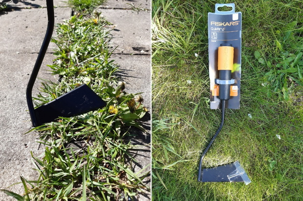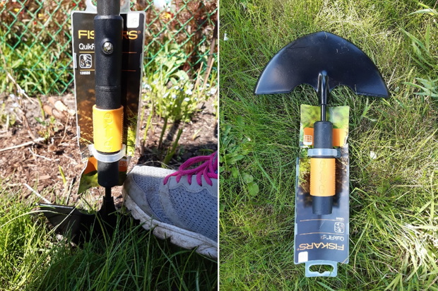 Motyka 3-funkcyjna QuikFit sprawdziła się doskonale podczas usuwania resztek chwastów i trawy wychodzącej pomiędzy kafelkami na wejściu do ogrodu. To poręczne narzędzie, które jest wytrzymałe i stabilne podczas pracy. Może być wykorzystywana także do spulchniania gleby oraz usuwania w trakcie niechcianych korzonków. Idealnie poradziła sobie przy wyrywaniu mniszka, który ma silne i dość długie korzenie. Za jednym ciosem udało się pozbyć większych okazów.