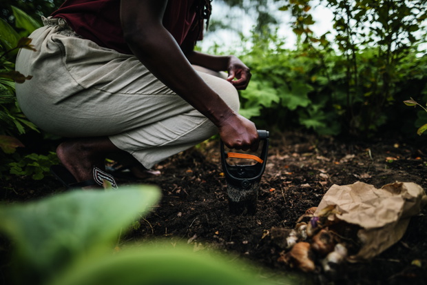 Dzięki sadzarce ErgoTM szybkie i wygodne wykonanie otworów w ziemi pod cebulki nie jest już problemem. Narzędzie ma solidny, długi trzonek z wytrzymałej stali, co zapewnia użytkownikowi zarówno podparcie, kontrolę wykopu, oraz zmniejsza obciążenie pleców i kolan. Ostre zęby ułatwiają pracę, szczególnie w twardej ziemi. Natomiast spust w uchwycie umożliwia spulchnienie, zebranie i wyrzucenie gleby zapewniając sprawne i wydajne sadzenie.