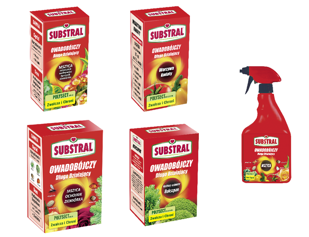 Należy pamiętać, że stosując opryski na szkodniki warto wybrać takie, które nie tylko zwalczają je, ale także chronią roślinę przed ponownym atakiem w przyszłości. Substral Polysect "Zwalcza i Chroni" zwalcza szeroką gamę szkodników, które atakują zarówno rośliny ozdobne, jak i uprawne. Środek ten cechuje przede wszystkim systematyczne działanie - oprysk przenika do rośliny i krąży w jej sokach przez 21 dni. Jest bezpieczny dla rośliny, ale zabójczy dla owada. W ten sposób mamy pewność, że po jednym użyciu, mamy skuteczne zabezpieczenie przez niemal miesiąc! Można go stosować zarówno doglebowo, jak i jako oprysk na rośliny.