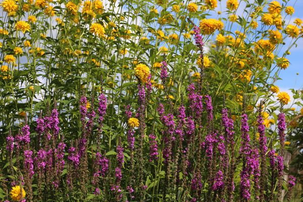 Podobny efekt pomagają osiągnąć wieloletnie trawy ozdobne: rozplenica Pennisetum, proso rózgowate Panicum virgatum i trzęślica trzcinowata Molinia arundinacea. Można też wypróbować kombinację żółto kwitnących bylin z białymi letnimi złocieniami Leucanthemum lub równie delikatnymi dzikimi ziołami, jak np. aminek czy dzika marchew.