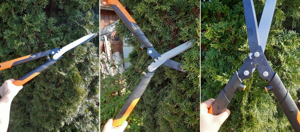 Wysokogatunkowa stal nierdzewna jest niezaprzeczalnym atutem w przypadku precyzyjnego cięcia. Dzięki długim ostrzom pozwoliły na precyzyjne dotarcie do wybranych części rośliny i skrócenie jej. Profilowanie tui było bardzo łatwe i przyjemne i zajęło dosłownie kilkanaście minut. Dodatkowo górne ostrze jest pokryte powłoką PTFE. Swobodne i bezpieczne cięcie zapewniają odbojniki.