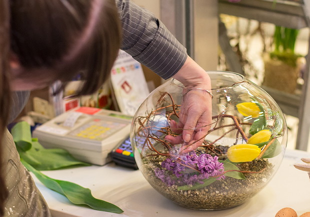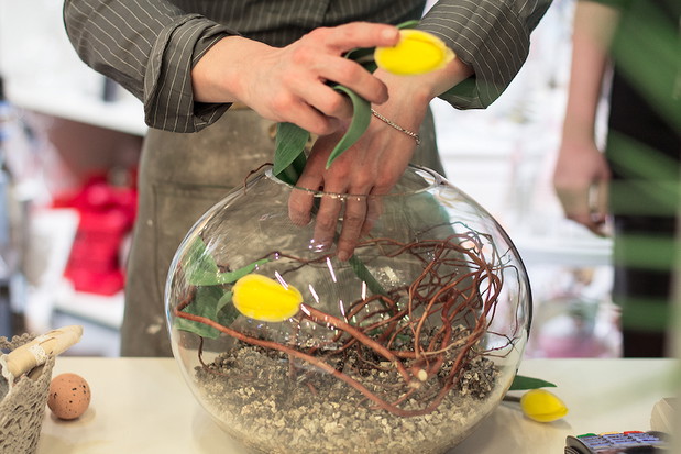 Przyjrzeliśmy się jak powstaje taka wiosenno-świąteczna aranżacja w kwiaciarni „Cuda Wianki” w Bełchatowie.