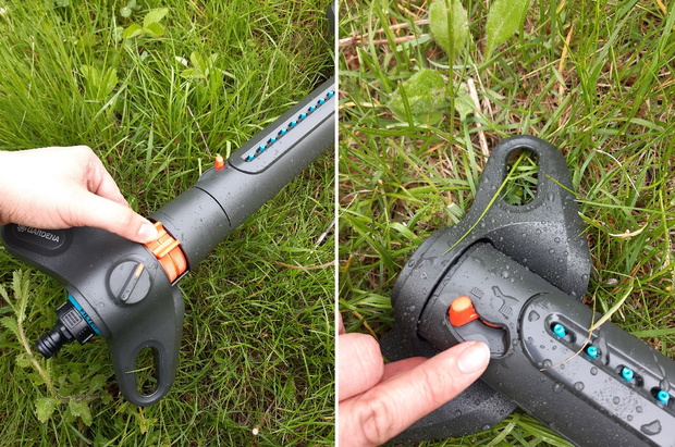 Ergonomiczny uchwyt jest bardzo wygodny w utrzymaniu i dobrze leży w dłoni. Wyzwalacz impulsowy ze zintegrowaną blokadą pracy ciągłej, a także płynna regulacja ilości wody obsługiwana jednym palcem sprawiają, że praca lancą jest wyjątkowo przyjemna. Całkowita długość 90 cm i obrotowa głowica zraszająca umożliwiają nawadnianie precyzyjne, co ułatwiło mi nawadnianie roślin.