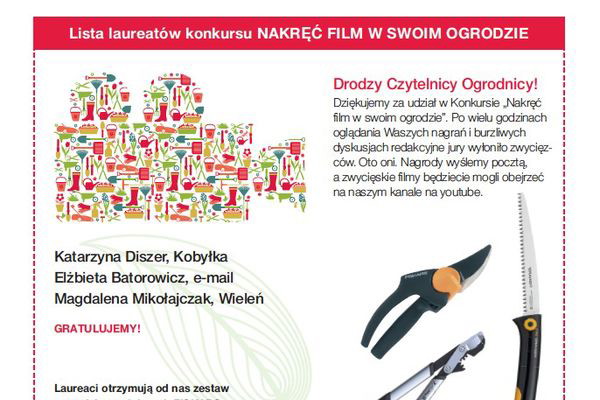 Fundatorem nagród jest firma Fiskars. Pełny regulamin konkursu "Nakręć film w swoim ogrodzie".