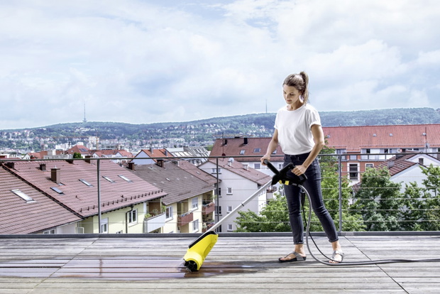 Czyszczenie tarasu to jedno z typowych zadań jakie mamy do wykonania wokół domu. Dzięki nowemu urządzeniu Kärcher z brudem na tarasie rozprawisz się w mgnieniu oka. Patio Cleaner to wygodne, skuteczne i funkcjonalne urządzenie zasilane elektrycznie. Dzięki obracającej się szybko szczotce i doprowadzanej pod niskim ciśnieniem wodzie urządzenie skutecznie szoruje powierzchnię tarasu i usuwa brud.