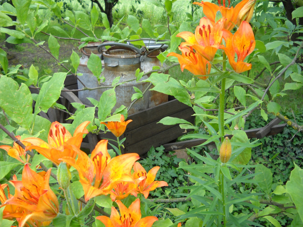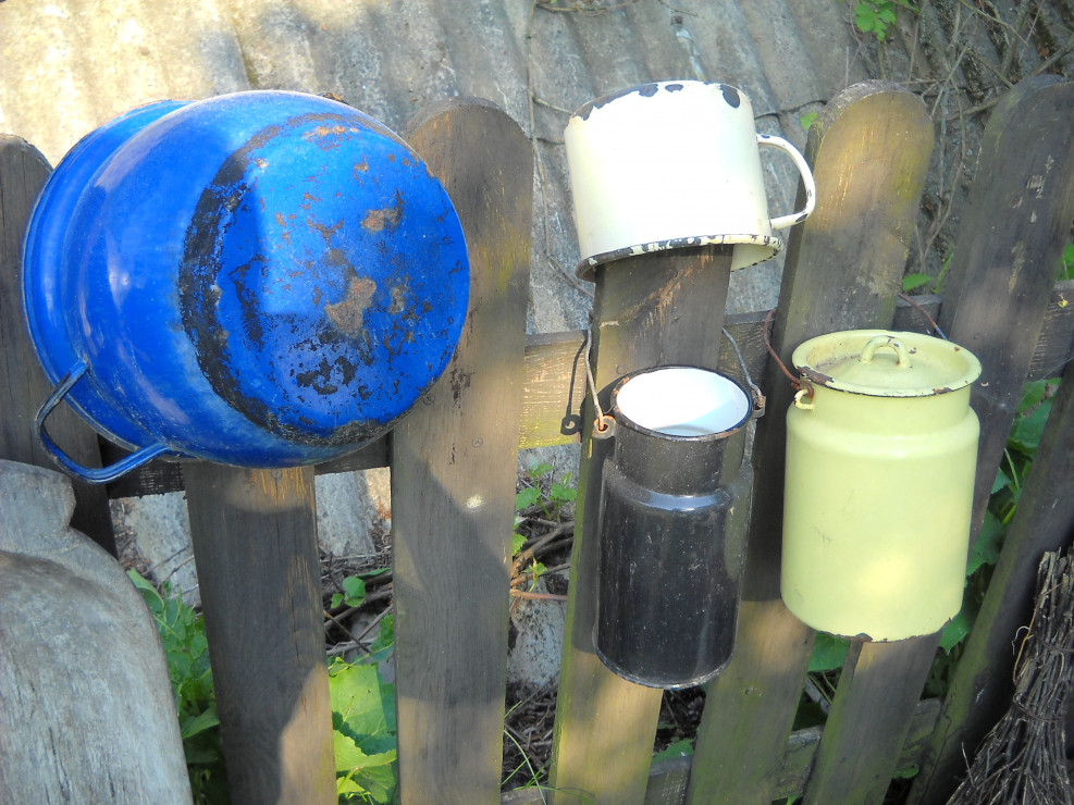 Drobne stare przedmioty są dobrym dodatkiem, doskonale komponują się wśród roślin jak i zdobią stary drewniany płotek.Nadają naszemu ogrodowi wiejskiego charakteru.Te oto przedmioty są z odzysku od naszych bliskich i znajomych.Nie potrzeba wiele aby dodać starego wiejskiego stylu w ogrodzie.........................