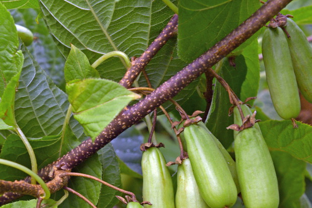 Pnącze o smacznych owocach i ozdobnych, częściowo przebarwiających się liściach, dorasta do 3-4 m wysokości. Pędy owijają się wokół podpór. Kolorowe, biało-różowe przebarwienia liści pojawiają się wczesnym latem. Owoce są duże, owalne, mają 4-4,5 cm długości, czasem są lekko spłaszczone, zielonożółte, dojrzewają w sierpniu, są aromatyczne i bardzo smaczne. Do wydania owoców potrzeba zapylacza, np. odmiany ‘Adam’. Pnącze znosi mróz do około ˗34 °C, strefa 4.