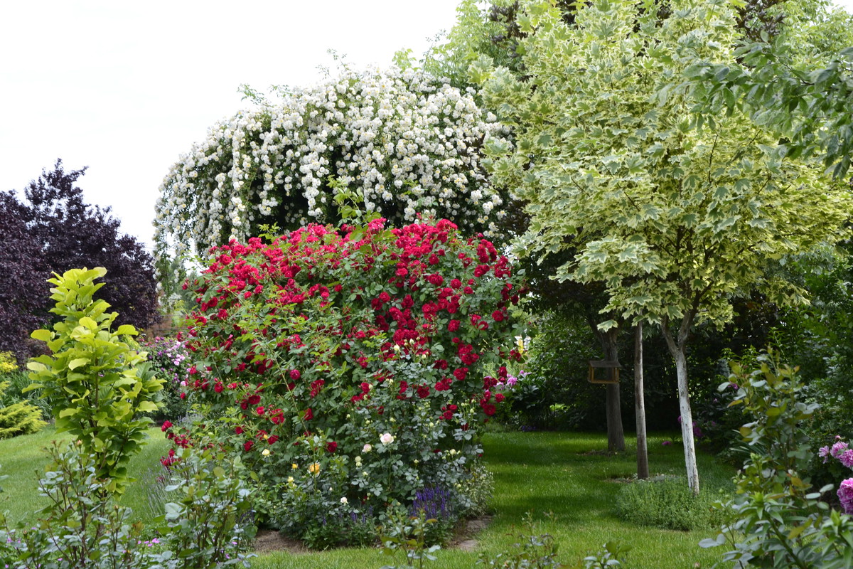 Mój ogród powstał z wielkiej pasji i zamiłowania do kwiatów. Dlatego jest taki kolorowy już od wiosny. Staram się, aby ciągle w moim ogrodzie coś kwitło, pachniało i tętniło życie. Pełno w nim pszczół, trzmieli, motyli i ptaków, które zresztą dokarmiam. W maju pachną lilaki, akacje, piwonie i goździki. W czerwcu nadal królują późniejsze odmiany piwonii, maki i moje ukochane róże, mimo że często jestem przez nie pokłuta i podrapana. Jednak ich rajski zapach wszystko wynagradza. W lipcu zaczynają swój urok i wdzięk prezentować urodziwe lilie, które również bardzo kocham. Wieczorami pięknie pachną w ogrodzie. Należy też wspomnieć o cudnych liliowcach, które również czarują swoją urodą. Gdy przekwitną lilie, swój pokaz zaczynają hortensje i trawy - następne moje ulubione rośliny. Oprócz tego w moim ogrodzie rosną również śliczne kocimiętki, powojniki, macierzanki, dzwonki. goździki, szałwie, lawendy, jasnoty, fiołki trójbarwne, pysznogłówki, bodziszki i wiele innych. Nie brakuje także różnego rodzaju ziół (oregano, tymianek, bazylia itp.). Można skosztować wiśni, czereśni, porzeczek, agrestu, malin, truskawek, śliwek i gruszek. Swoje miejsce w ogrodzie mają również warzywa, które wykorzystuje w kuchni.