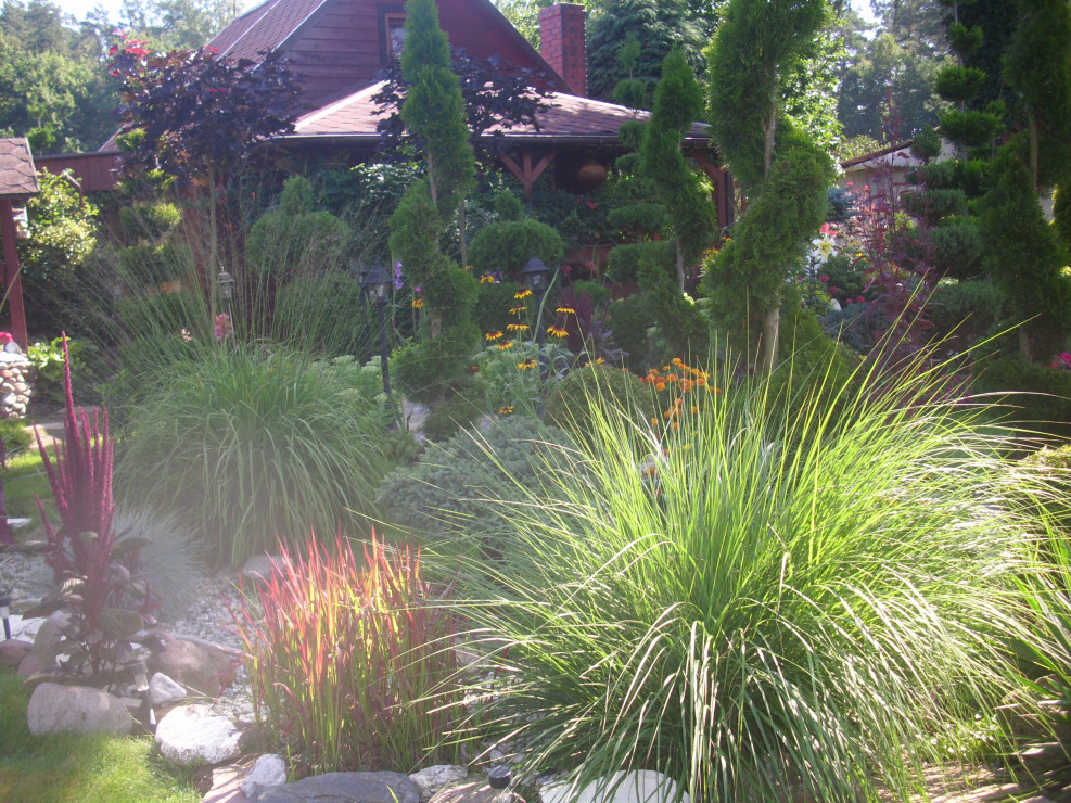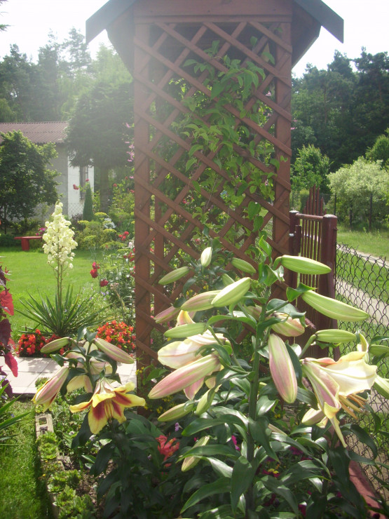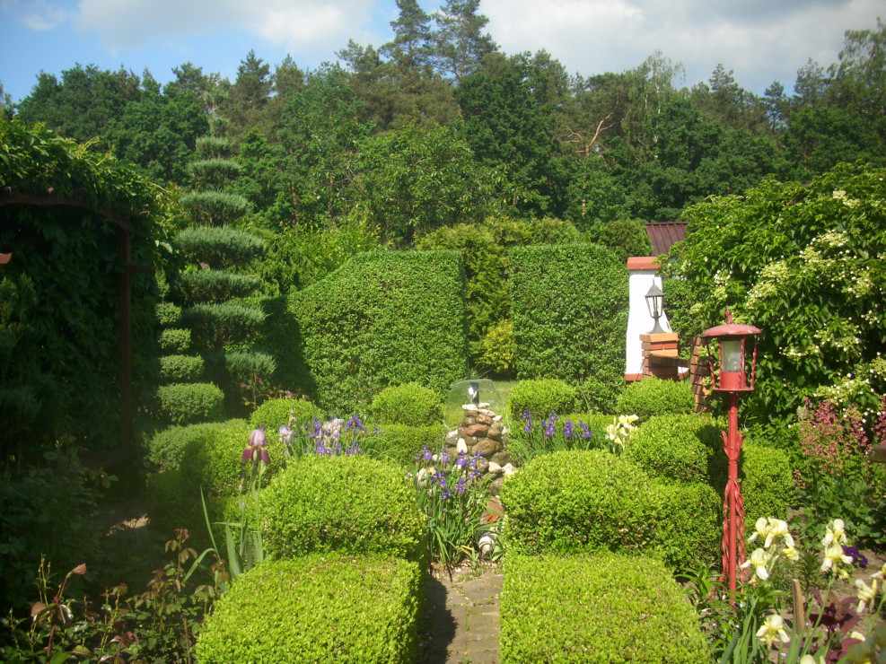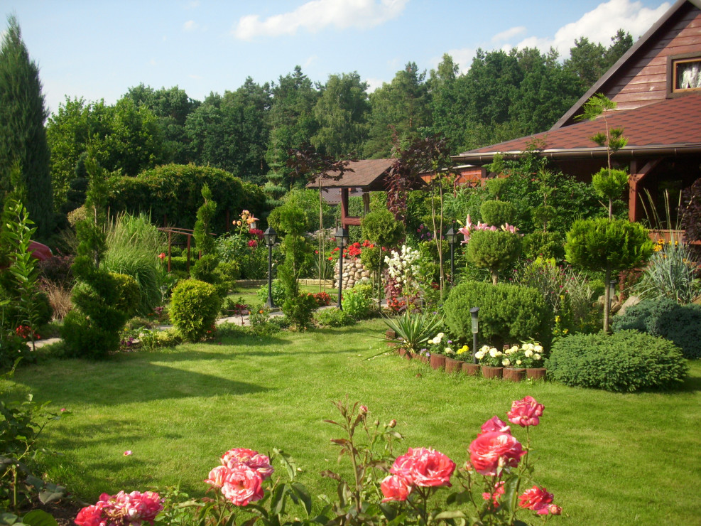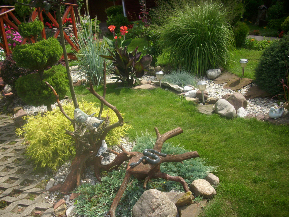 Nasza bajkowa kraina, to skromna działeczka tryskająca zielenią i kwieciem. Powstała jednak nie bez wysiłku, każdą wolną chwilę poświęcamy na pielęgnowanie i upiększanie tego malowniczego zakątka położonego w nie mniej malowniczej okolicy w małym miasteczku Głowno. Działkę tą uprawiamy już od trzydziestu lat. Z każdą rośliną jesteśmy bardzo związani, gdyż wszystkie posadziliśmy własnymi rękami. Jednak wszystkie krzewy się bardzo rozrosły i nasza działka musiała przejść całkowitą metamorfozę. Wszystkie jałowce, cyprysiki, tuje, sosny, a także 20-letni wiąz zostały przycięte na styl bonsai. Rośliny zyskały nowe życie, a działka wypiękniała. W nowej aranżacji dostojnie prezentują się róże, których mamy ponad 70. Na wyróżnienie zasługują też lilie i hortensje. Staramy się by w naszym ogródku zawsze kwitły kwiaty, od marca do pierwszych mrozów. Mamy też wyodrębniony skrawek ziemi, na której rośnie 30-letnia jabłoń, parę krzaków malin, porzeczki, czereśnia i maleńkie poletko poziomek, które tak chętnie zjadają nasze wnuki Filipek i Adam. Zawsze możemy liczyć na pomoc przy pielęgnacji działki na Adama. Oprócz pracy jest też czas na wypoczynek i spotkania rodzinne. Zielona przestrzeń jest tak zaprojektowana, że się tu chce przebywać i odpoczywać. Cała działka wygląda niezwykle bajecznie jakby była namalowana przez wspaniałego artystę, który zachwycił się niezwykłym pięknem przyrody. Irena i Witold Gawrychowie