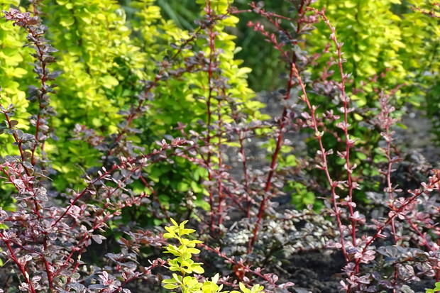 Gęsty i niski krzew o rozłożystym pokroju i złocistym ulistnieniu, dorasta do 0,2-0,3 m wysokości i 0,6 m szerokości. Pędy są ułożone horyzontalnie. Liście są drobne, łopatkowate, żółte, jesienią przebarwiają się na pomarańczowo. Kwiaty są żółte, pojawiają się na wiosnę, w kwietniu i maju. Odmiana odporna na mróz, strefa 5. Polecana do sadzenia w parkach i ogrodach jako roślina okrywowa.