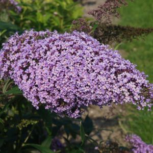 Krzew o wzniesionych pędach i zwartym pokroju, dorasta do 1-1,5 m wysokości. Liście są ciemnozielone, szerokie, lekko karbowane. Kwiaty fioletowoniebieskie z ciemnym, pomarańczowym oczkiem są zebrane w wydłużone, wiechowate kwiatostany, wyjątkowo gęste i przyjemnie pachnące. Krzewy wabią motyle i pszczoły. Odmiana dosyć odporna na mróz, strefa 6.