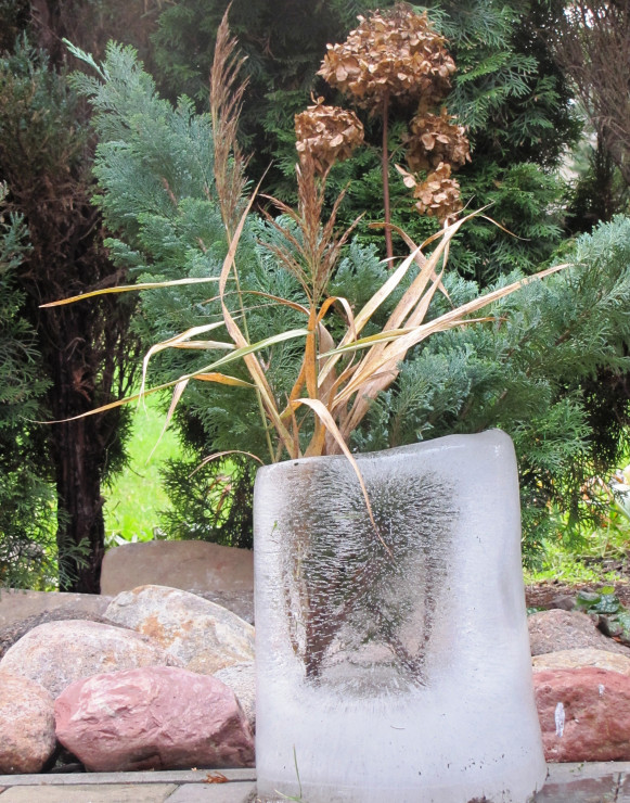 Czasami przyroda sama pomaga w tworzeniu dekoracji w naszym ogrodzie - wazon lodowy......................................................................................................................................................................................................................................................................................................