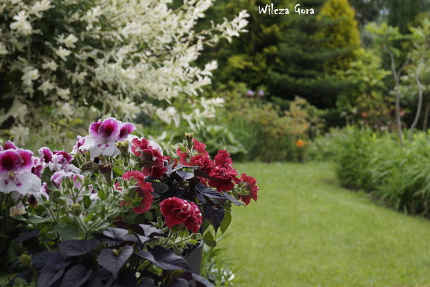 Czerwcowa zieleń naszego ogrodu jest taka soczysta... Zaczynają kwitnąć róże i większość letnich bylin. Dodatkowe kolory na tarasach uzyskujemy dzięki kompozycjom w donicach. Większość czasu pędzamy pielęgnując nasze rośliny i usuwając chwasty z rabat. Czekamy na nasze ukochane hortensje, które właśnie obsypują się pąkami. Ogrodowe, bukietowe, drzewiaste ...uwielbiamy wszystkie...a mamy ich ponad 120 krzaków. W lipcu nasz ogród zaczyna tonąc w bieli ich kwiatów. Czekamy na to z niecierpliwością. A na razie...zapraszamy na czerwcowy spacer....