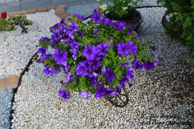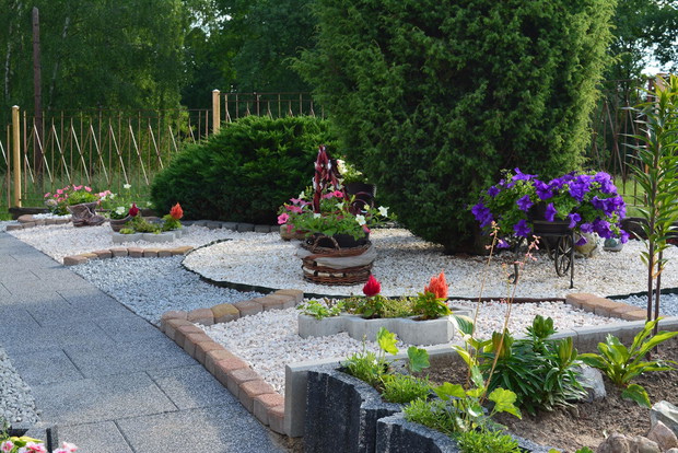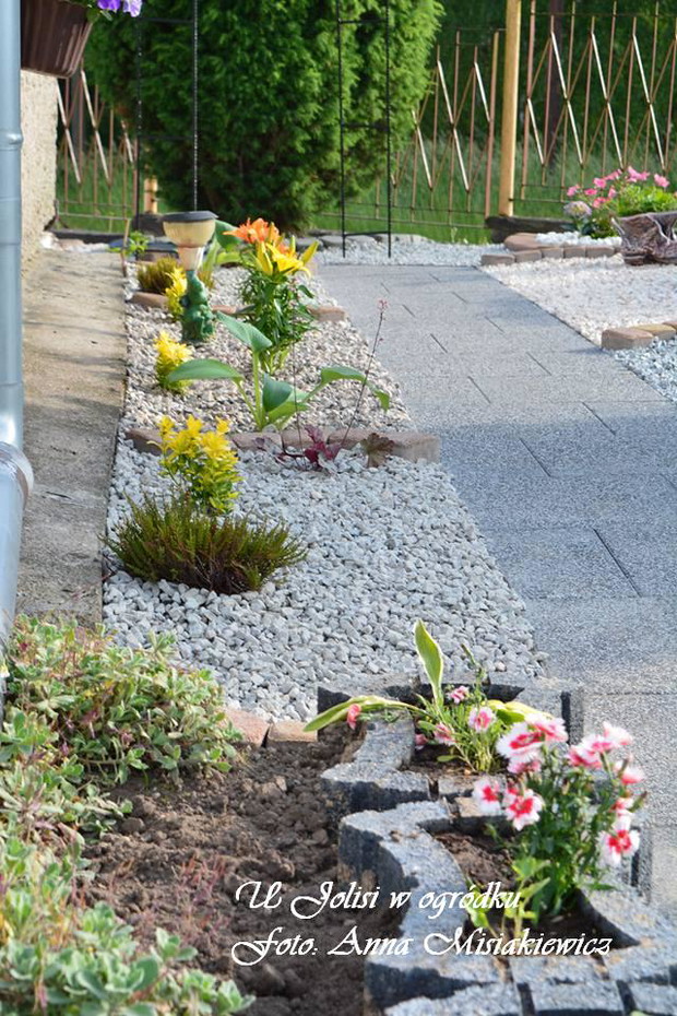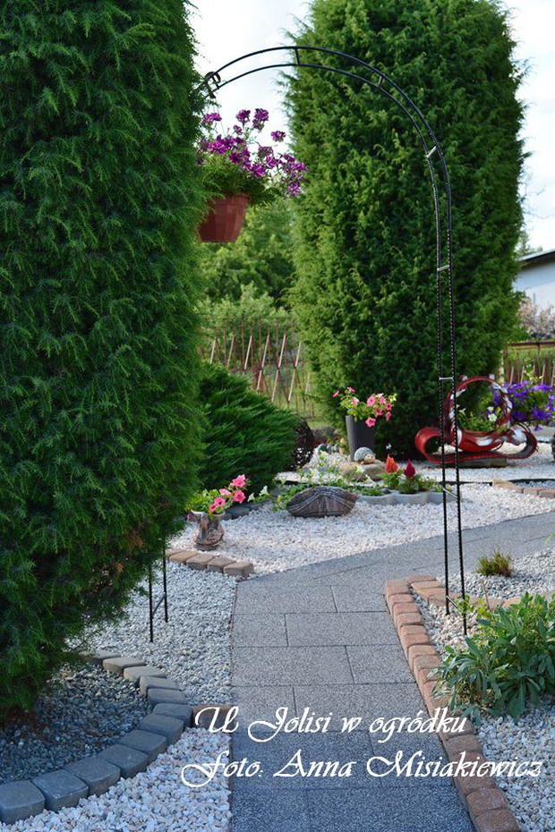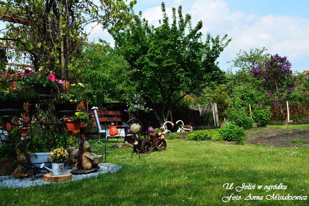 Mój ogród rozciąga się wkoło domu , składa się z kilku części. Odkąd pamiętam uwielbiałam zajmować się ogrodem i kwiatami. Co roku mój ogródek się zmienia i nabiera nowego wyrazu. Ciągle coś zmieniam i projektuję. Każdego roku od wiosny do jesieni poświęcam dużo czasu na pracę w ogrodzie, przynosi mi to jednak ogromną satysfakcję ,radość i odprężenie . W pracach ogrodowych pomaga mi też mąż . Kiedy wracam z pracy zmęczona zawsze znajdę czas by poświęcić trochę czasu na prace ogrodowe. Czuję ciszę i odprężenie, ogród daje mi motywację do dalszych realizacji moich planów. W upalne dni miło jest ukryć się w zacienionym miejscu ogrodu i delektować się letnimi zapachami a wieczorami spotkać się z rodziną i znajomymi przy grillu.Ogród przechodzi jeszcze mnóstwo zmian, prace trwają w dalszym ciągu. Oto kilka zmian w moim ogrodzie, przedstawiam na zdjęciach. W ogrodzie przybywa ciągle nowych roślin, z których można zrobić bukiety . Jak miło jest zrobić coś nowego z moich roślin. Kocham to robić to moja pasja,każdy kwiat , czy liść znajdzie miejsce by użyć go do zrobienia przepięknego bukietu.