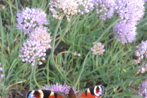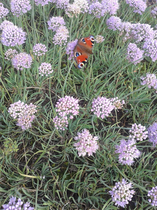 Czosnek sinawy (allium senescens) i rusałka pawik jeden z najładniejszych motyli w kraju,,..........................................wrzesień 2014...................................................................................................................................................................