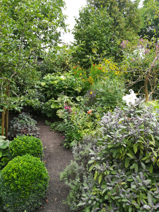 Moją działkę mam już dość długo, wraz z upływem czasu zmienia się . Mam bardzo dużą kolekcję bylin, traw i funkii i hortensji. Jestem na emeryturze, więc jest to mój sposób na wypoczynek i ruch na świeżym powietrzu. Działka jest długa ma 50 m, szeroka 10 m,więc jest problem z zaprojektowaniem. Mam też mały ogródek warzywny, kilka odmian winorośli i drzewek owocowych. Nie wyobrażam sobie w tej chwili życia bez tego kawałka ziemi.