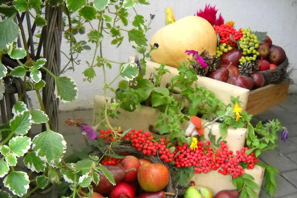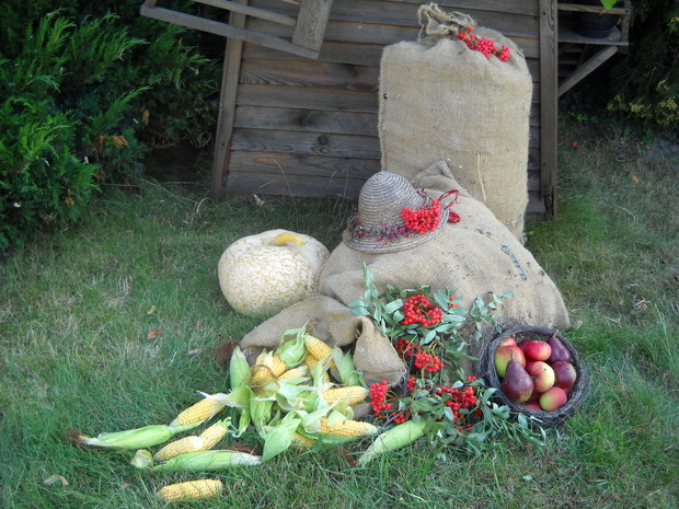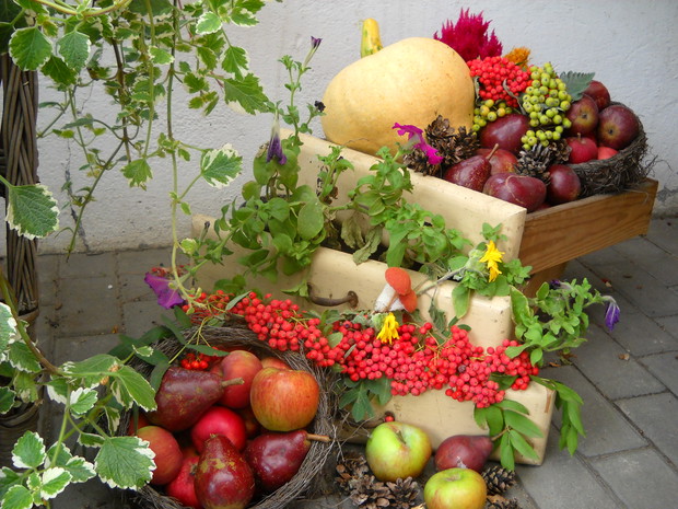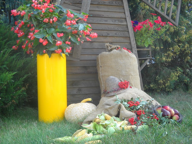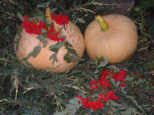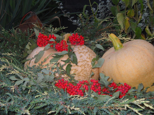Jesień tuż tuż...a w moim ogrodzie powstają dekoracje pełne barw i kolorów niosące tą kolorową porę roku.Wykonałam kilka dekoracji związanych z Jesienią,wykorzystałam do kompozycji dynie,gruszki i jabłka oraz grona czerwonej i zielonej jarzębiny......................................................................................................................................................................................