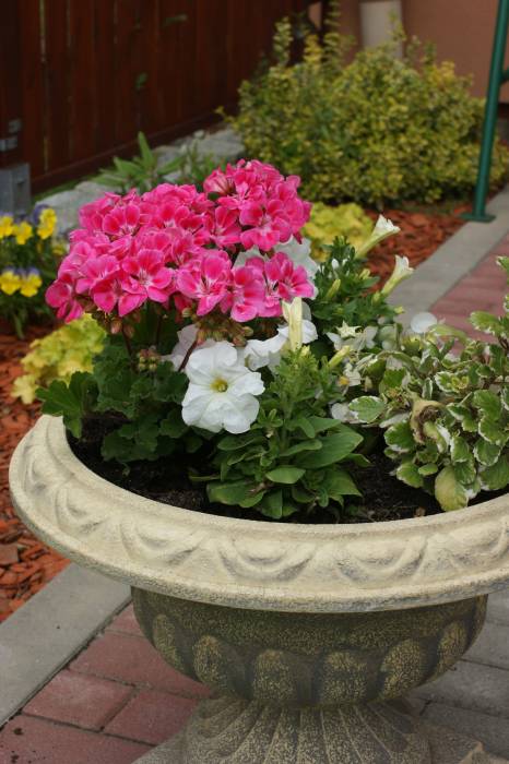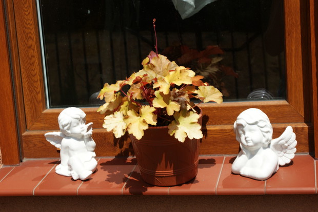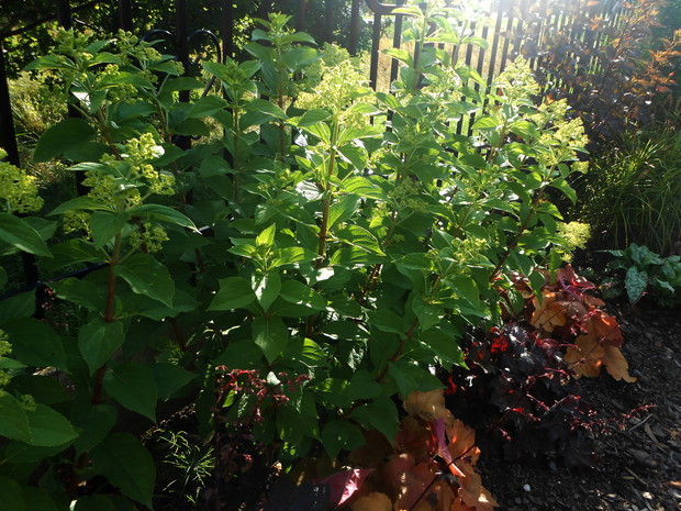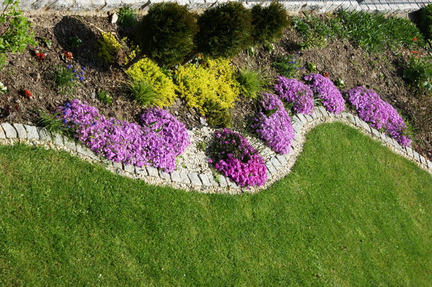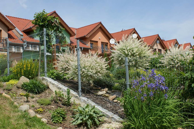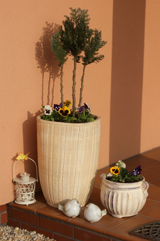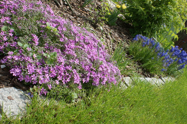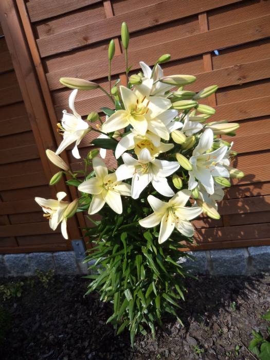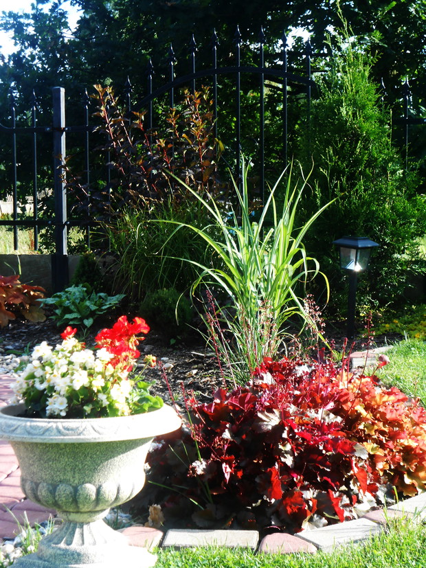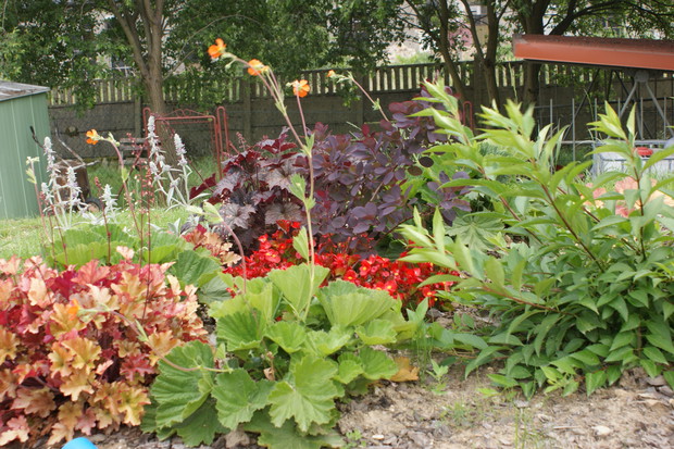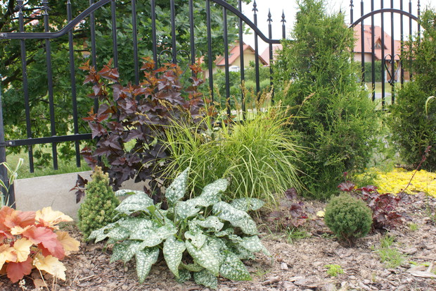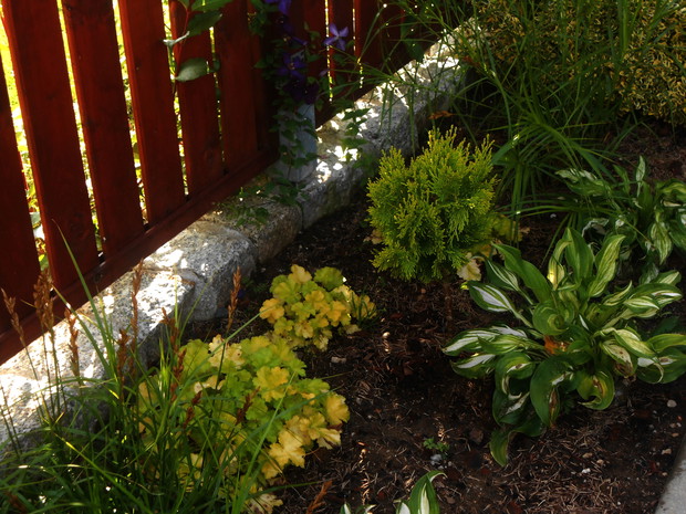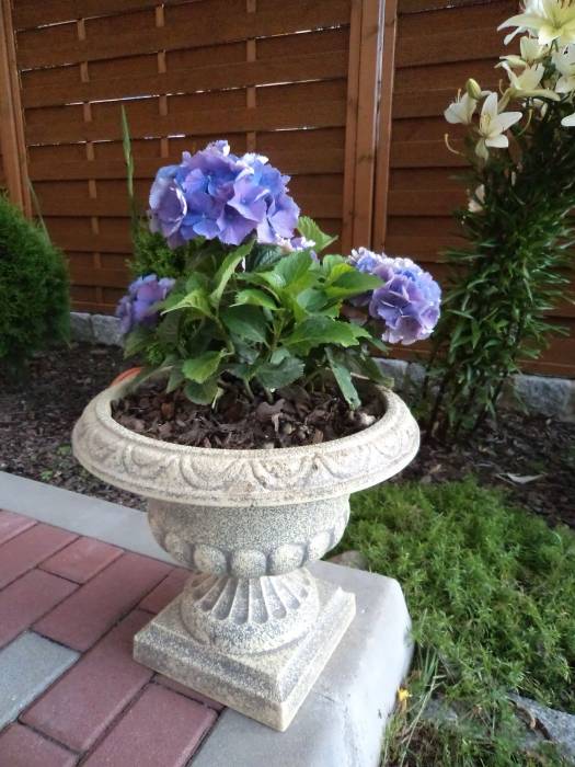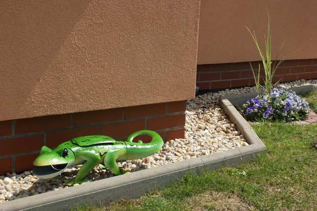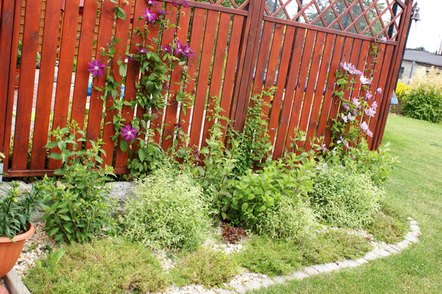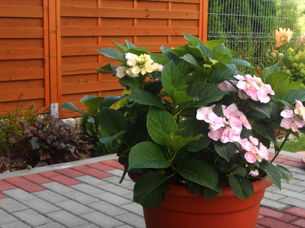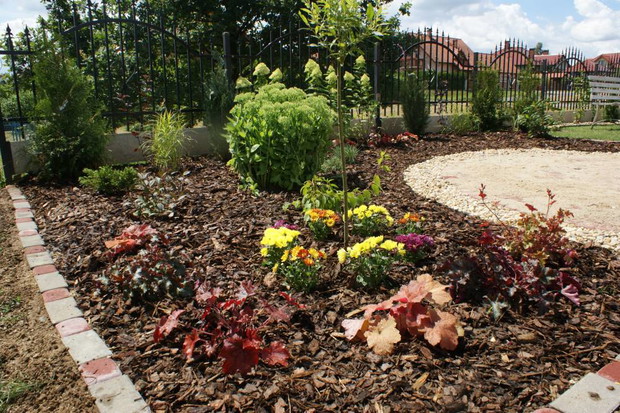 Do nowego domu wprowadziliśmy się w maju 2012 r. Dopiero wtedy na dobre zaczęliśmy urządzać nasz ogród i trwa to do dziś..... Pomysły są głównie moje, a męskiej części rodziny - wykonanie ;) Na początku nie było łatwo, bo ziemia miejsce w ogóle nie nadawało się do nasadzeń. Mieliśmy tutaj głównie glinę i gruz. Nawet nie wiem, ile worków ziemi, piachu i kompostu zużyliśmy, by rośliny mogły tutaj rosnąć!!! Niestety ogródkowi wiele jeszcze brakuje do doskonałości... Ciągle coś dosadzam i przesadzam. Uwielbiam hortensje, żurawki i trawy. Rosną u nas wzdłuż ogrodzenia tuje, które z czasem dadzą trochę cienia. Od rana do wieczora mamy słonko,więc wybór roślin był dość ograniczony. Hortensje Limelight to moja chluba w sezonie letnim, podobnie jak lilie i żurawki Marmelade. W jednej części wyłożyliśmy kostkę w kształcie okręgu, na obwodzie posadziłam rośliny, co dało trochę urozmaicenia i koloru. Obok stanęła ławeczka i pergola, po której pną się róże. Większą część stanowi trawnik z miejscem zabaw dla dzieci, trampoliną i basenem w sezonie letnim. Dolna część ogródka to część bardziej gospodarcza - stoi tutaj altanka, drewutnia i jest miejsce na kilka grządkę z truskawkami. Schody i zejście zrobiliśmy z podkładów kolejowych. W tym sezonie nastąpi jeszcze kilka zmian, bo mam zamiar założyć dwie nowe rabatki.