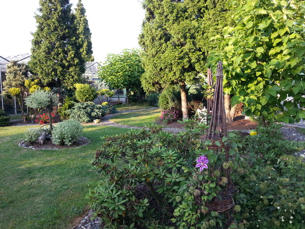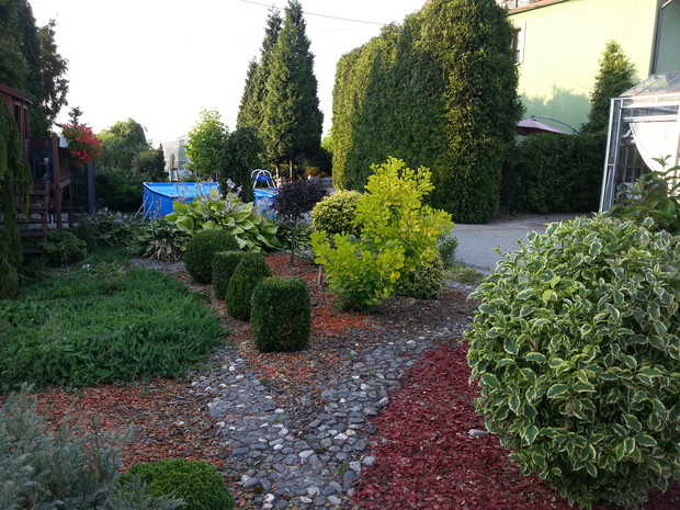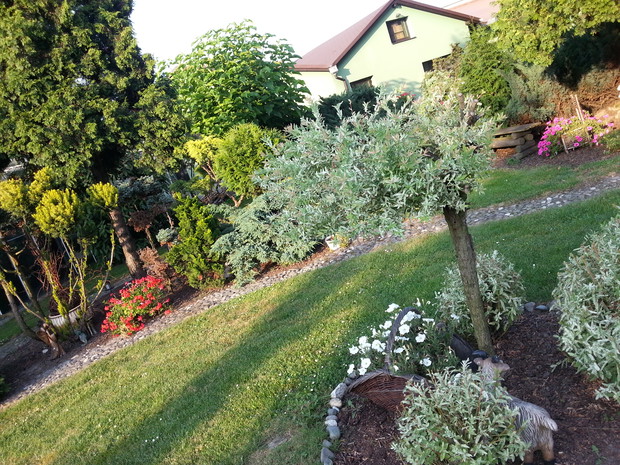 Pierwsze rośliny w naszym ogrodzie zostały zasadzone 20 lat temu. Kilka lat później powstało oczko i zostały zasadzone rośliny otaczające go. Przez kilka lat nie ingerowaliśmy w jego rozwój, gdyż rodzice nie mieli na to czasu, a mnie zbytnio nie interesował jego wygląd. Dopiero 5 lat temu rodzice stopniowo zaczęli o niego dbać i tym samym zaszczepili we mnie miłość do ogrodów. Obecnie razem z moją dziewczyną staramy się dbać o jego kondycję, pielegnować roślinki a także wprowadzać nowości i z każdym rokiem poprawiać jego wygląd. W przyszłości chcemy poświęcić się całkowicie ogrodnictwu, rozpocząć studia magisterskie w tym kierunku a także otworzyć własną firmę projektującą i wykonującą ogrody.