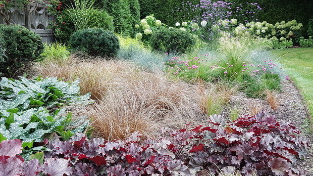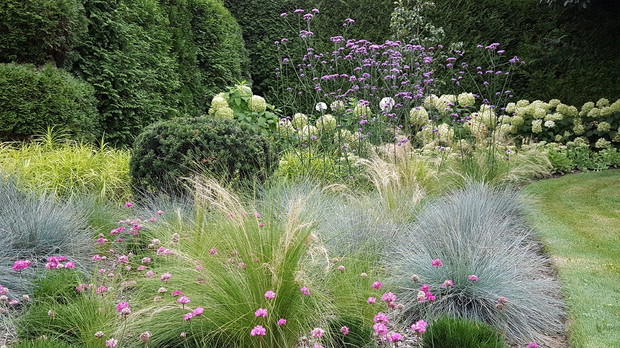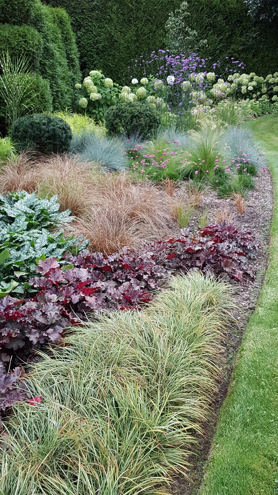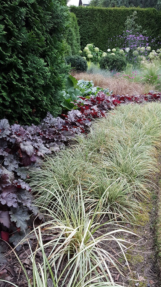 Mój ogród przydomowy nie jest duży – ma zaledwie 200 metrów- jednak daje mi wiele radości z możliwości spędzania w nim wolnego czasu. Uwielbiam pracę w ogrodzie, doglądanie i pielęgnowanie rabat, jak również tworzenie i realizowanie nowych pomysłów. W tej zielonej przestrzeni znajdują się przede wszystkim rośliny zimozielone strzyżone w przeróżne kształty i formy, które zdobią ogród zimą, jednak latem odbywa się prawdziwy spektakl traw ozdobnych, które uwielbiam za ich delikatność i różnorodność faktur. Zaczynając od niskich okrywowych odmian turzyc i Carexów kończąc na wysokich odmianach Miskantów Chińskich błyszczących w słońcu. Oczywiście szczególne miejsce zajmują hortensje, zwłaszcza bukietowe idealnie komponujące się z zimozielonymi cisami i bukszpanami, ale również odmiany ogrodowe w donicach zdobiące wejście do domu. Pomimo wielu obowiązków zawsze znajdę czas, aby spędzić w ogrodzie jak najwięcej czasu, relaksując się w specjalnie stworzonych do tego celu zakątkach, jednak najwięcej radości daje mi możliwość pracy i pielęgnacji roślin w mojej zielonej oazie.