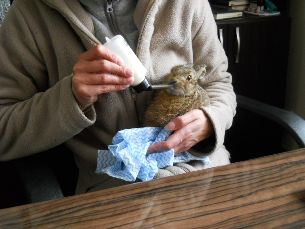 Taki gość pojawił się po Świętach Wielkanocnych - NIE ZOSTAŁ ZABRANY OD MAMY, biedny chodził po tym największym śniegu, gdzie nie było ani jednego źdźbła trawy. Wcisnął się zmarznięty pod ścianę,pozwolił się wziąć na ręce i tak został uratowany zajączek z pierwszego marcowego miotu. Przez pierwsze trzy dni dostawał mleko bo nie miał wyraźnych ząbków, potem była marchewka, pietruszka i trudno zdobywana trawa. W ciągu dnia przesiadywał cichutko w otwartej klatce jak przysłowiowy zając pod miedzą,czasami wychodził coś przekąsić. Był z nami jedenaście dni i sam dał znać, że już pora na wypuszczenie skacząc po drzwiach w godzinach rannych. Teraz czasem go widujemy, najczęściej pod wieczór pokaże się gdzieś blisko, a najważniejsze, że nie przyzwyczaił się za bardzo do ludzi i daje sobie rade sam. Inni goście są bardzo ruchliwi nie za bardzo reagują na zdanie- poczekaj zrobię Ci zdjęcie- dlatego jako zdjęcia może nie są dobrej jakości, ale jaka radość z odwiedzin.