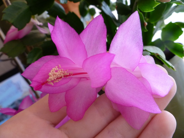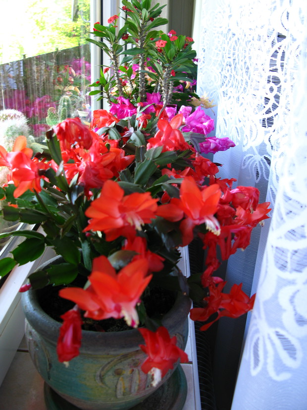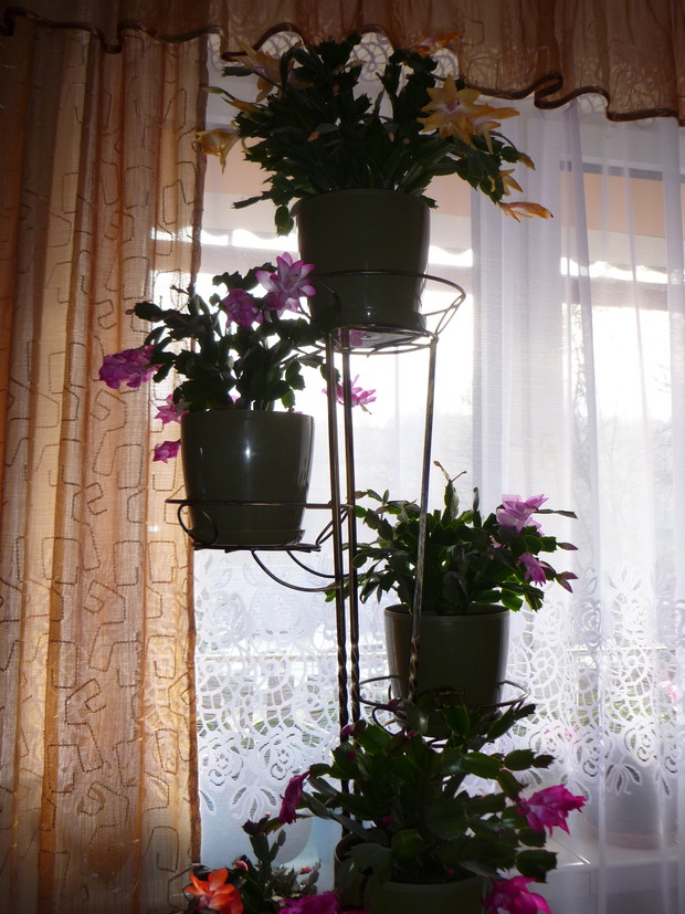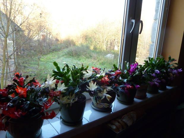 W zygokaktusach urzekły mnie przede wszystkim kolory ich kwiatów począwszy od białych, przez pomarańczowe, różowe aż do purpurowych. Kwiatom należy przez cały rok zapewnić jasne i ciepłe stanowisko, osłonięte jednak prze bezpośrednim nasłonecznieniem. W okresie wegetacji trzeba rośliny podlewać obficie, w pozostałych porach roku natomiast podlewanie należy ograniczyć. Jest to roślina łatwa w pielęgnacji. Bez trudu można ją również rozmnożyć, z fragmentów pędów, które szybko ukorzeniają się w temperaturze 20 C przy zapewnieniu umiarkowanej wilgotności. Choroby jakie mogłyby trapić zygokaktusy to czerwone przebarwienia liści na skutek oparzenia słonecznego lub pomarszczenie liści, kiedy podłoże byłoby zbyt wilgotne. Jako ciekawostkę należy podać fakt, iż szlumbergera nie lubi przestawiania. Zbyt raptowna zmiana stanowiska w okresie kwitnienia może skutkować opadaniem pąków kwiatowych.