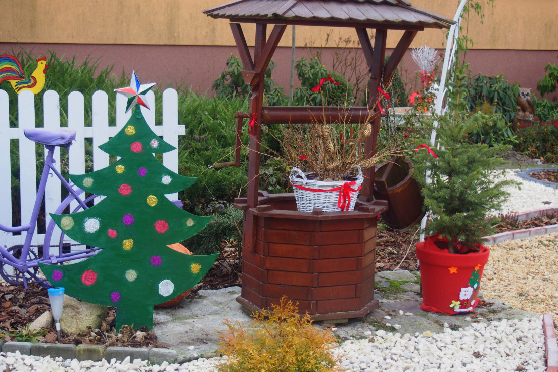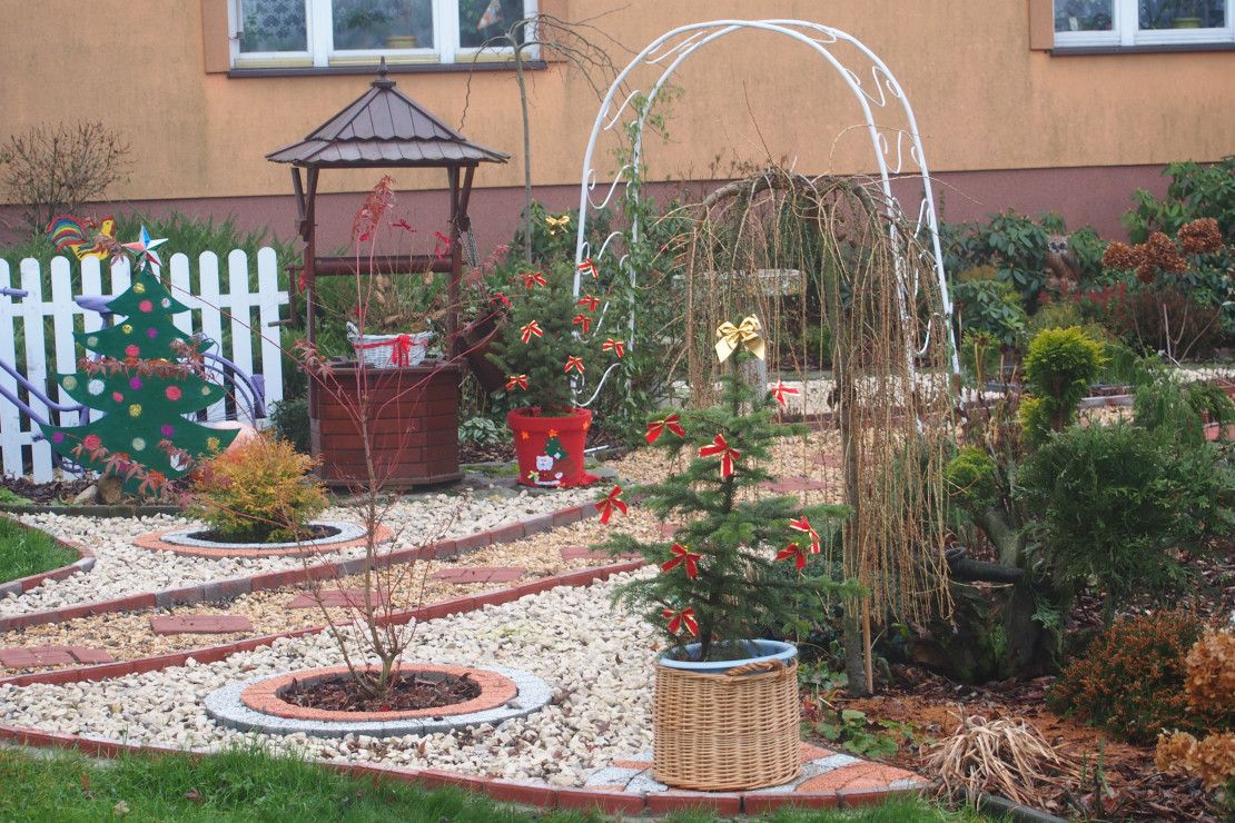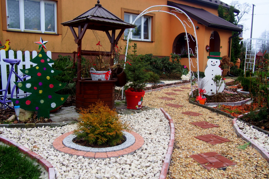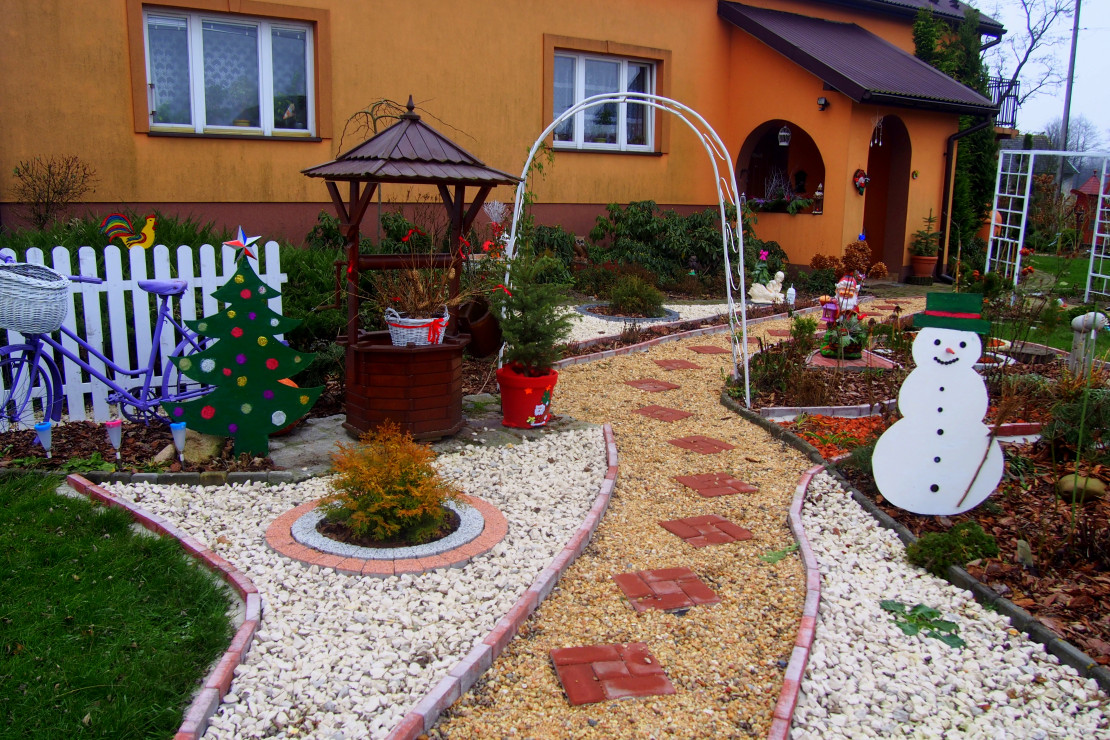 Staram się aby mój ogród był cały rok kolorowy. Gdy nadchodzi okres zimowy i zbliżają się święta dekoruje ogród ozdobami, które staramy się wykonywać własnoręcznie. Bałwan i choinka wycięte są ze sklejki i pomalowane farbami, mimo zimowego okresu ogródek ciesz nasze oczy :).................................................................................................................................................................................................................................................................................................................................................................................................................................................................................................