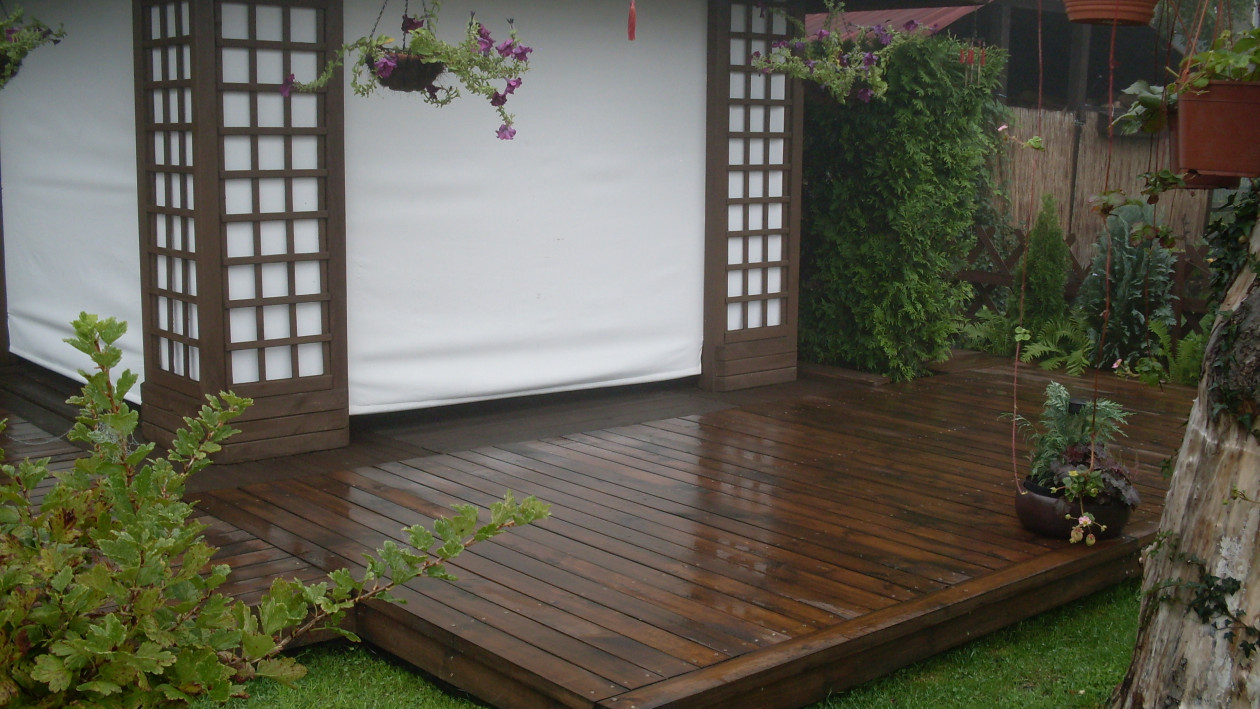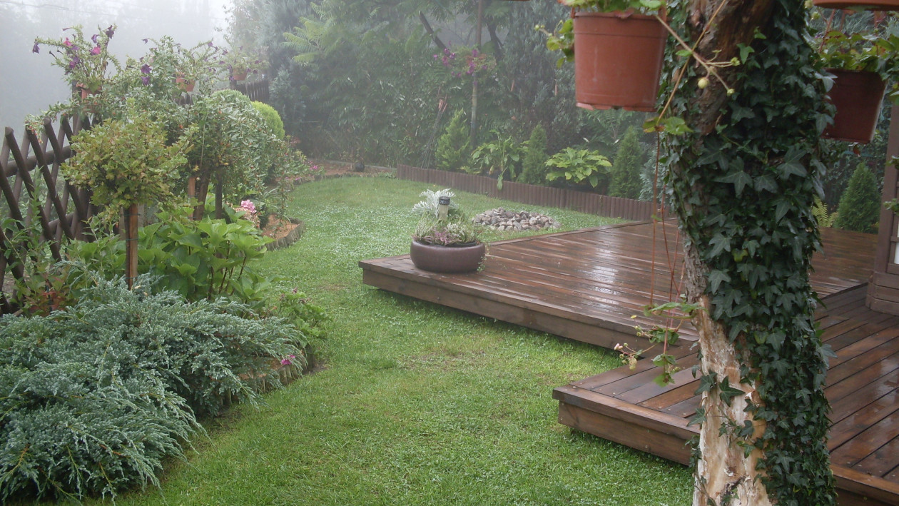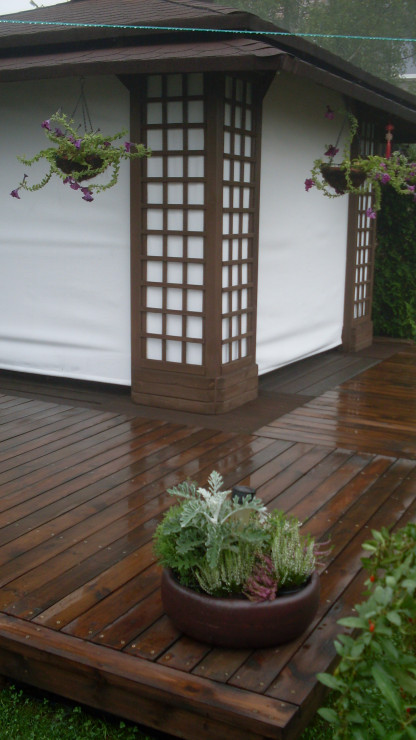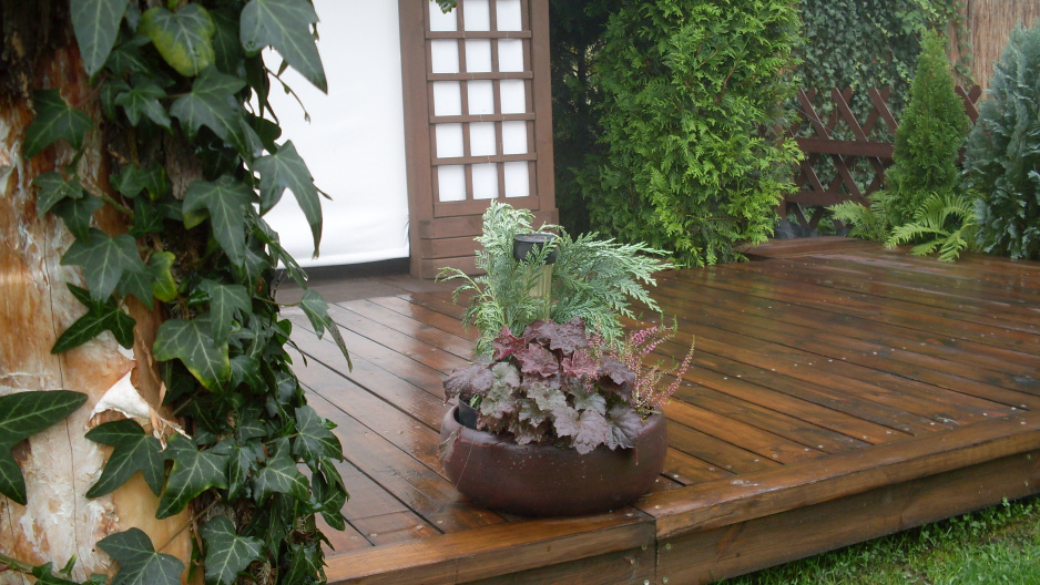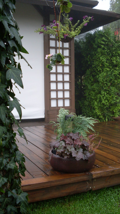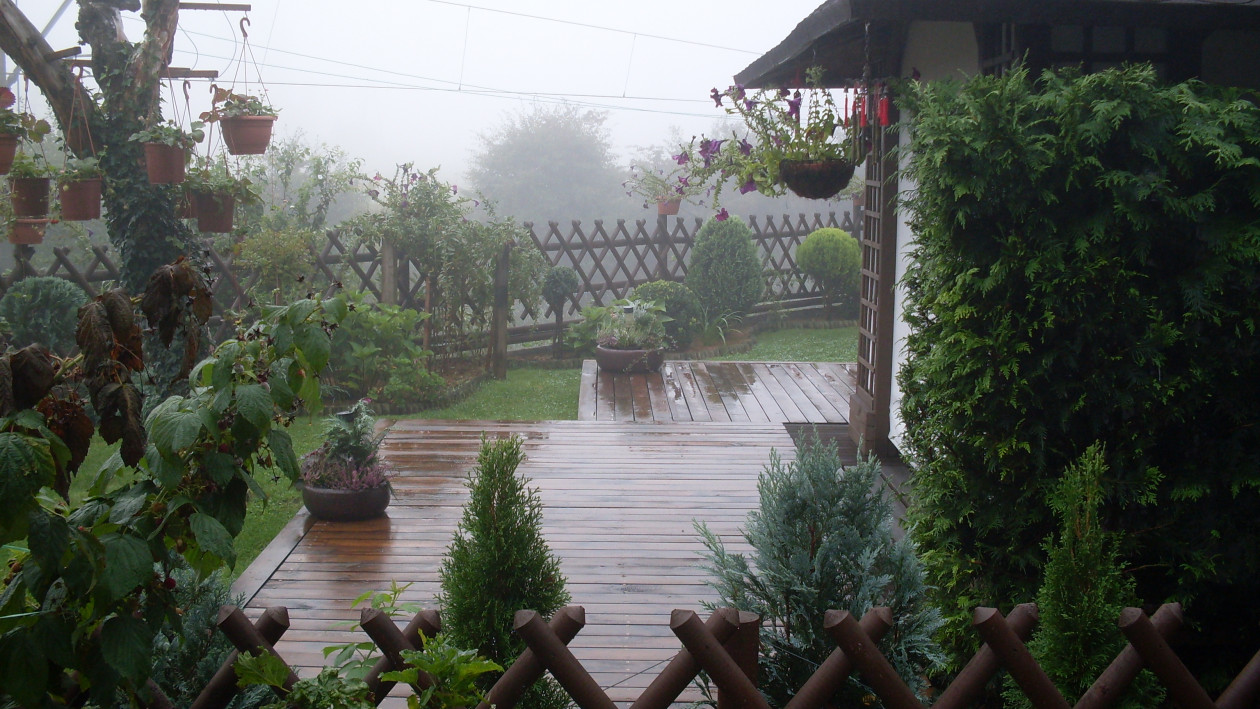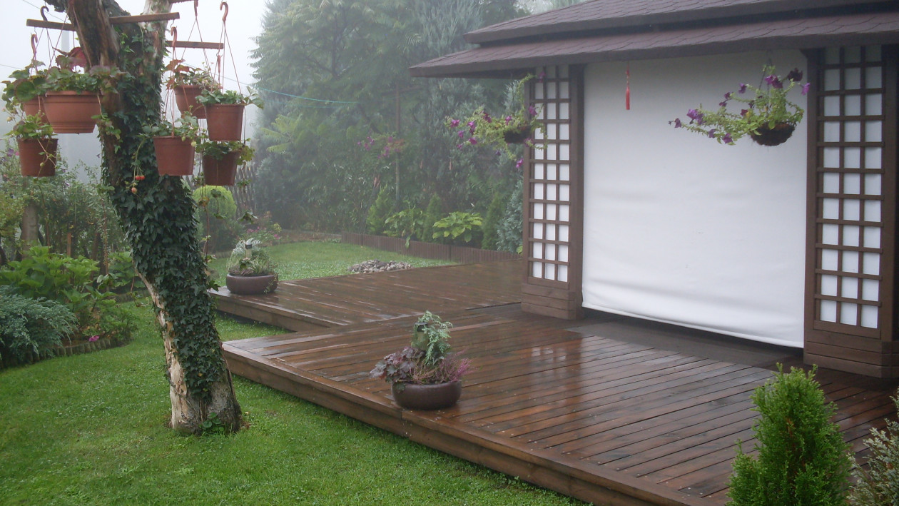 Pozwoliłem sobie wrzucić parę srceen' ów z ogrodu wraz z herbaciarnią spowite mgłą - co oznacza że jesień jest tuż tuż. Na poszczególnych kadrach można zobaczyć moje Chashitsu gdzie dorobiłem własnoręcznie tego lata patio z desek od strony południowej i wschodniej herbaciarni. No nie ukrywam że "namęczyłem" się z tym tematem prawie przez trzy miesiące no a efekt końcowy to sami ocenić musicie oglądając poniższe zdjęcia. Na poszczególnych ujęciach starałem się też pokazać prostotę nie dodając zbędnych "ozdóbek" w ogrodzie, które tylko potem szpecą lub zagracają mi przestrzeń. Sesja fotek wykonana jest w porannej mgle przez co podkreśla jeszcze bardziej magię oraz dodaje atmosferę tajemniczość temu skrawkowi ogrodu. Zapraszam do oglądania galerii
