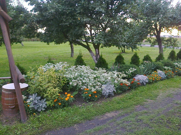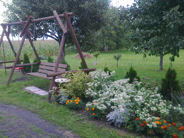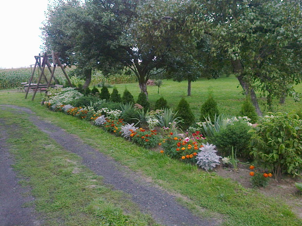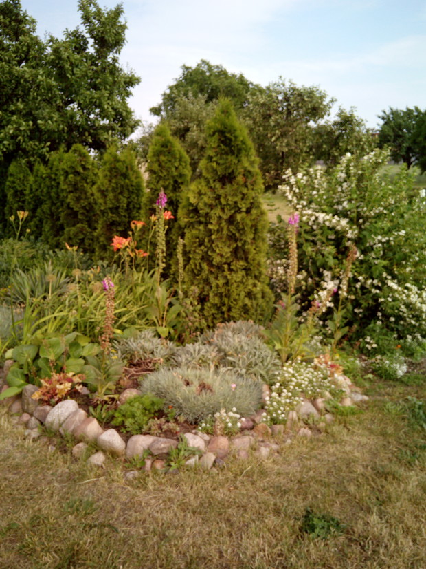 Ogród owocowy mamy od dawna. Postanowiłam go trochę upiększyć. Rośliny są przeważnie ,,zdobyczne", trochę od wymian z koleżankami resztę z internetu i okolicznych sklepów ogrodniczych lub bezpośrednio od producenta. Staram się kupować tanio z przecen lub po sezonie. Trudnością są dla mnie sarny, które dużo roślin zniszczyły głównie drzewek ozdobnych. Pracę w ogrodzie wykonuję sama. To relaks po pracy.Zdjęcia są trochę nieskładne, robione w różnym czasie ale chyba fajnie wyszły, można oko nacieszyć zimą,Trochę dużo tego mam nadzieję że nie zanudziłam. Alina Włodarczyk Lenartowice ul. Parkowa 21 63-300 Pleszew
