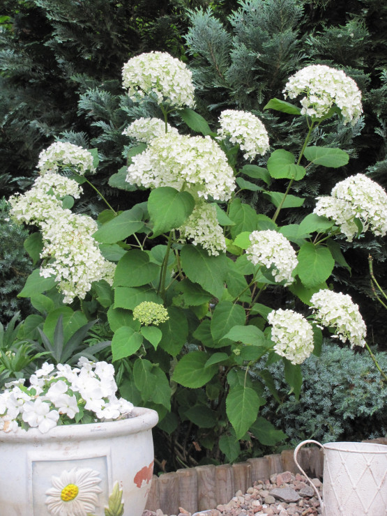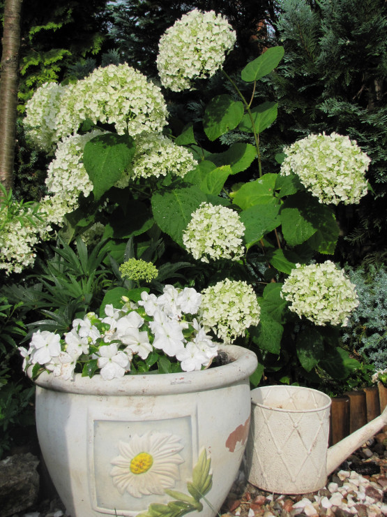 Hortensje ogrodowe. Może nie moja miłość, bo wolę hortensje bukietowe, ale Anabell zachwyciła wielkością kwiatów.