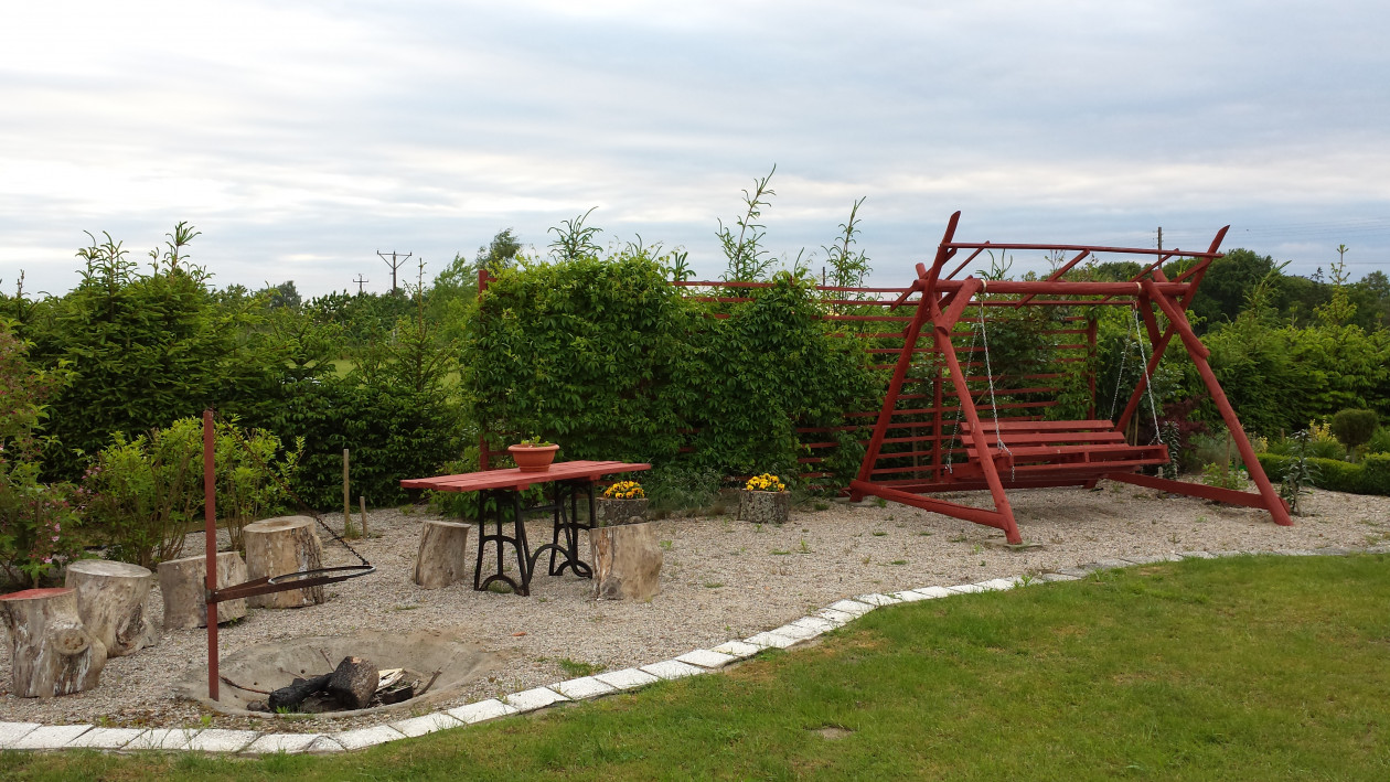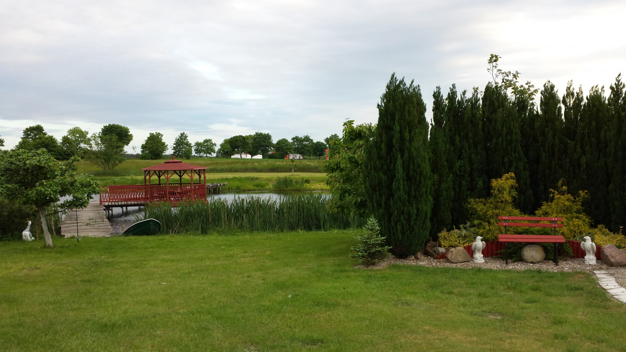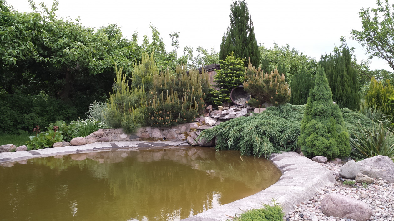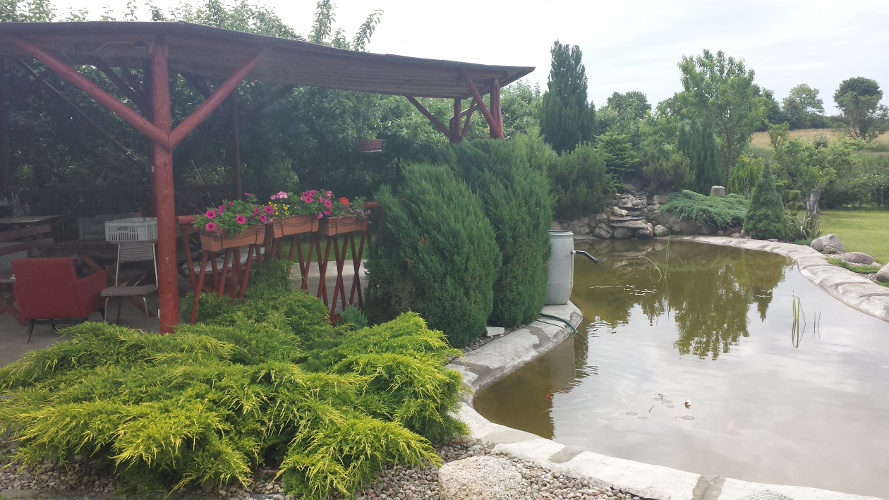 Ogród wraz z domem jednorodzinnym wybudowanym własnoręcznie powstał 9 lat temu. Na działce znajduje się wielki staw o powierzchni 0,8 ha .Na stawie wybudowaliśmy altanę oraz pomost na drugą stronę działki. Obok domu znajduje się wielki sad wieloowocowy, warzywniak wraz z namiotem z plexy oraz zamykana altana schowana przed słońcem wśród drzewek. Na środku działki wybudowaliśmy żelbetonowe oczko wodne, altanę drewnianą otwartą wraz z kamiennym grillem. Nie zabrakło również miejsc gdzie można usiąść i odpocząć- liczne ławeczki w sadzie, hamak czy też ławka bujana. W ogrodzie znajduje się kilka skalniaków na których rośnie wiele gatunków iglaków, kwiatów oraz róż. Większość roślin rozmnażam sama. Wszystkie prace w ogrodzie wykonujemy sami na tyle na ile pozwala na to czas, siły oraz pogoda. Jest jeszcze dużo powierzchni niezagospodarowanej obsianej trawą ale to z czasem zapewne się zmieni jeśli tylko będą nowe pomysły.