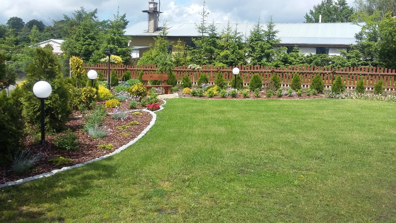 Jeden to za mało. Na początku posiadałem jeden ogród, ale jak sami wiemy apetyt rośnie w miarę jedzenia. W zeszłym roku postanowiłem zrobić drugi ogród, który jest jakby kontynuacją pierwszego, ale w innym miejscu. Tak jak w życiu tak i w ogrodach i na każdej działce mamy dylematy tak czy może inaczej. Moim pierwszym takim dylematem przy zakładaniu ogrodu było czy taki sam jak pierwszy czy całkiem inny. Był to problem. Postanowiłem zrobić podobny ponieważ żeby był łat na całej działce. Ogród robiłem do wczoraj :) Zostały w nim posadzone tzn przesadzone iglaki które znajdowały się w innym miejscu. Żywopłot został posadzony z tui Szmaragd. Dosyć sporo bylin. Oraz drzewa i krzewy. Jedna rabata którą nazywam żywą tzn. Nie jest ściółkowane na wiosnę kwitną na niej tulipany ok 400 szt po tulipanach sadzę kwiaty jednoroczne takie jak Turki i Begonia drobne.